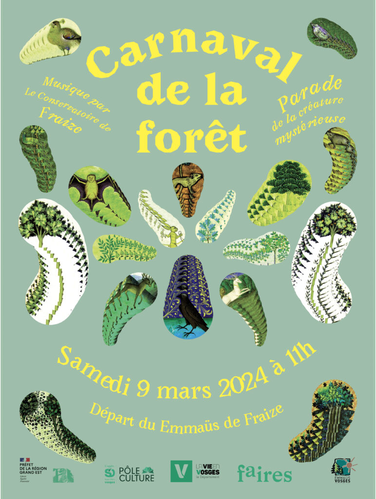Samedi 9 mars et pour la première fois, un Carnaval de la Fôret se déroulera à Fraize. Ce Carnaval de la Forêt donnera lieu à une parade déguisée mettant à l’honneur la forêt, ses habitants de toute nature, ses créatures imaginaires… au départ des locaux de Emmaüs (14 rue des Aulnes). La parade, qui se mettra en marche à 11h, sera mise en musique par le Conservatoire de Fraize.