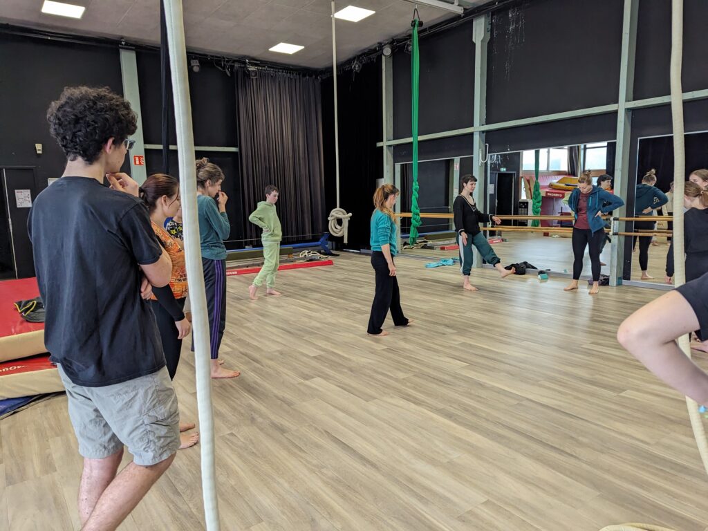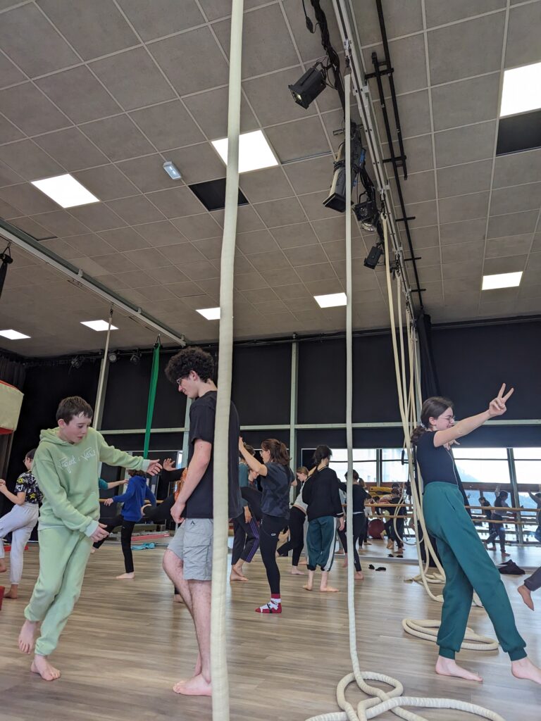 Plus précisément au collège Vautrin-Lud, où les 13 élèves de la section Arts du cirque de l’établissement ont pu découvrir puis s’initier à la corde lisse. Une discipline circassienne aussi visuelle qu’exigeante. Le matin, les artistes de L’Encordée ont présenté leur spectacle « Les Baudrières » aux 13 collégiens ainsi qu’à tous les élèves des classes de 6e, au sein du gymnase du lycée Georges-Baumont. L’après-midi, c’est à quelques centaines de mètres de là, à l’Espace Louise-Michel dans les locaux de l’Ecole des Nez-Rouges, que les 13 apprentis acrobates se sont essayées à la corde lisse.
