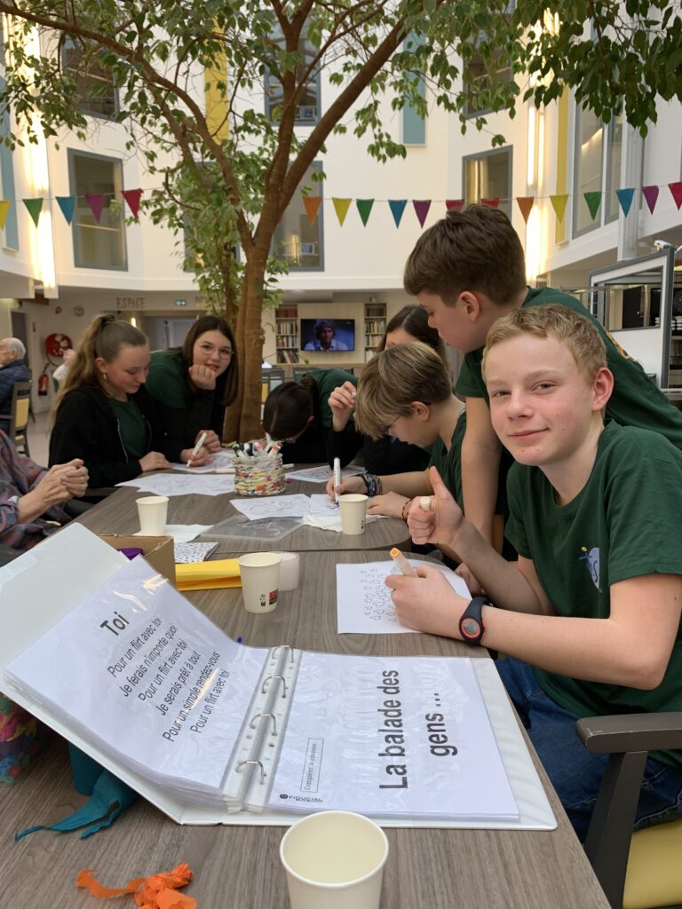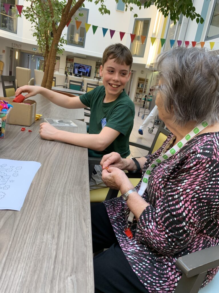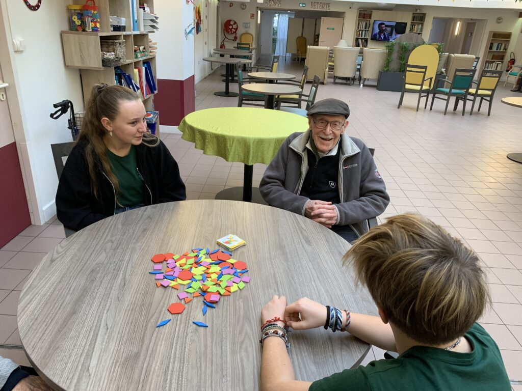 Jeux de société, ateliers de loisirs créatifs et remise de cartes de vœux réalisées par les élèves de cinquième ont animé ce moment convivial. Elle s’est terminée par un goûter et des chants accompagnés de musique, le temps est vite passé, nos élèves auraient volontiers prolongé ces moments chaleureux. Ils ont déjà décidé que cette première rencontre ne serait pas la dernière.