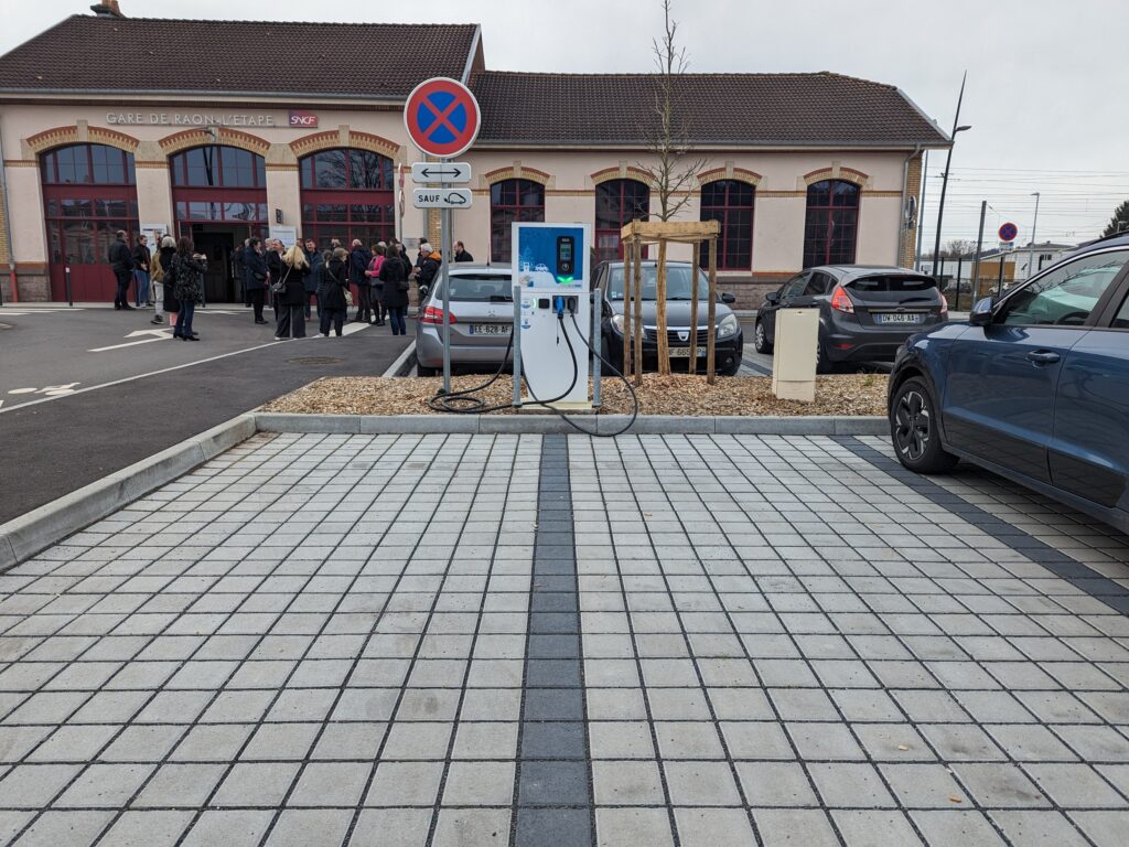 Situé sur la ligne Saint-Dié-des-Vosges-Nancy, le pôle d’échange multimodal raonnais vise à faciliter les déplacements, en rassemblant et connectant différents modes de transport en un seul et même endroit : trains, bus, vélos et voitures, notamment électriques. Concrètement, le pôle se compose de 45 places de stationnement pour les voitures, dont 2 places pour Personnes à Mobilité Réduite – PMR – et 2 places avec des bornes de recharge pour les voitures électriques ; de 3 quais de bus aux normes PMR ; d’un abri couvert et sécurisé pouvant accueillir jusqu’à 20 vélos.