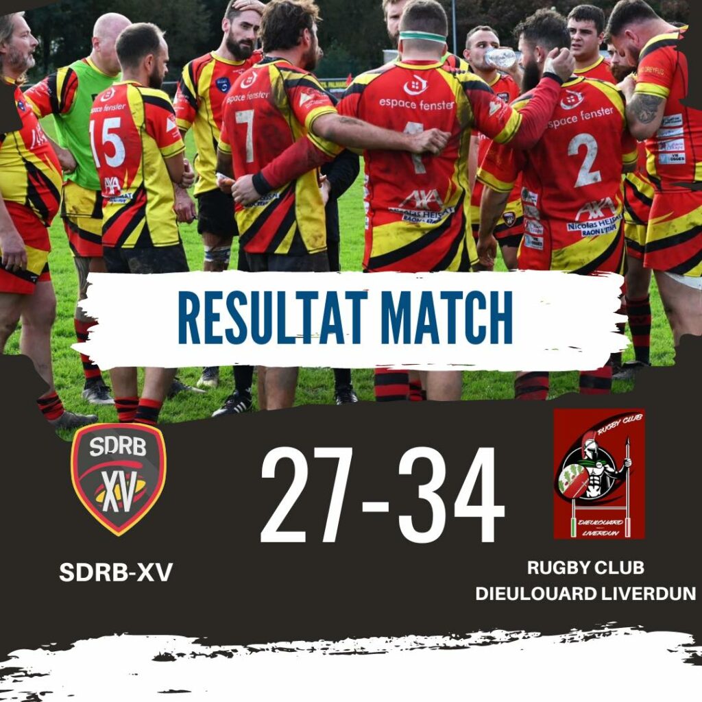 L’équipe Séniors du SDRB XV recevait le Rugby Club DIeulouard-Liverdun ce dimanche au stade Pierre-Pebay, dans le cadre du championnat de Régionale. Les joueurs de l’entente déodatienne, raonnaise et bachâmoise se sont inclinés sur le score de 27 à 34.