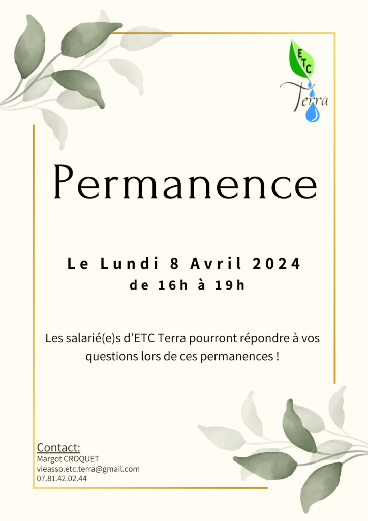Mercredi 20 mars, de 15h30 à 19h30, à Cap France, 36 rue Ernest Colin 88100 Saint-Dié-des-Vosges. Contacte à ETC Terra : Nicolas RICHARD au 06 32 04 86 40.