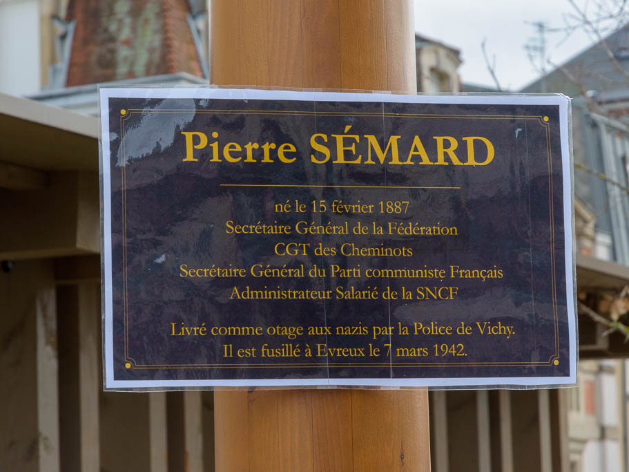 Le 3 avril prochain, en marge de l’assemblée générale de la section des cheminots CGT de Saint-Dié-des-Vosges, une plaque commémorative à la mémoire de Pierre Sémard sera installée sur l’un des poteaux du parvis de la gare.