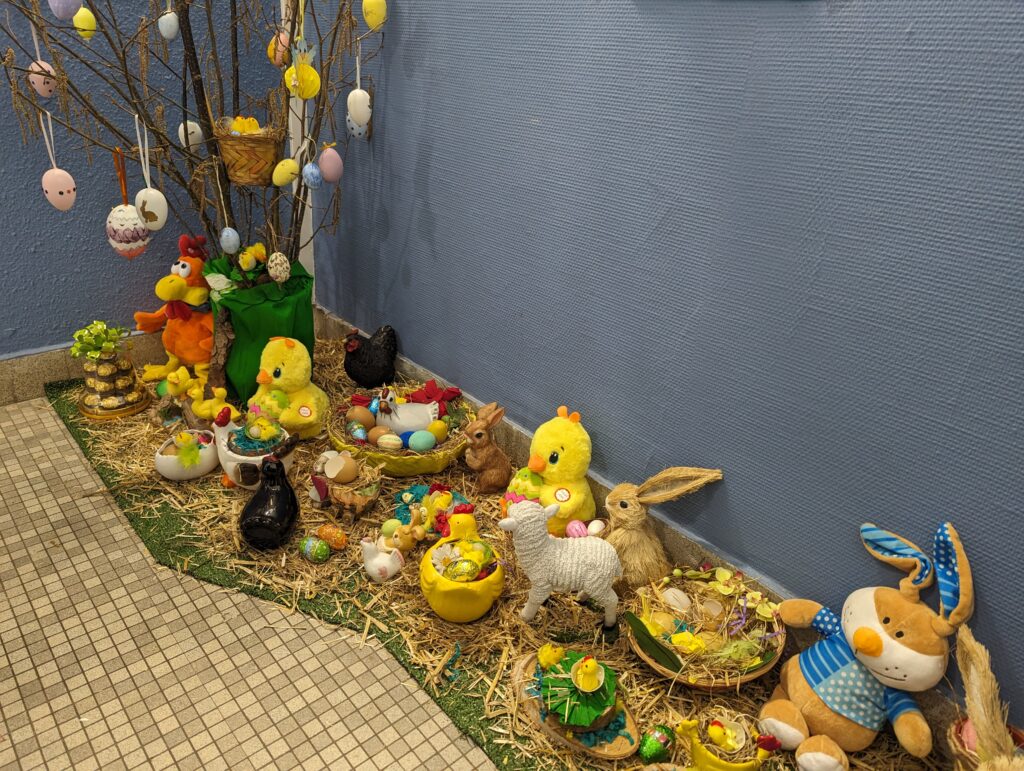 Lapins, agneaux, poussins, poules, œufs, cloches… à travers ces décorations printanières, la retraitée déodatienne souhaite autant égayer l’immeuble que témoigner de sa foi chrétienne. « Pour moi Pâques représente la Réusurection de Jésus qui a été envoyé sur Terre par Dieu son père, pour le Salut de quiconque croit » explique Anne-Marie Huck, qui confectionne elle-même les décorations ou les achète dans des magasins de Saint-Dié-des-Vosges. Une démarche qui plait au sein de l’immeuble ainsi que du côté de son propriétaire, le bailleur social Vosgelis. Et tant que sa santé le lui permettra, la Déodatienne continuera inlassablement de décorer, à l’occasion de Pâques et Noël, les communs du bâtiment où elle vit depuis maintenant 53 ans… en apportant toujours de la nouveauté.