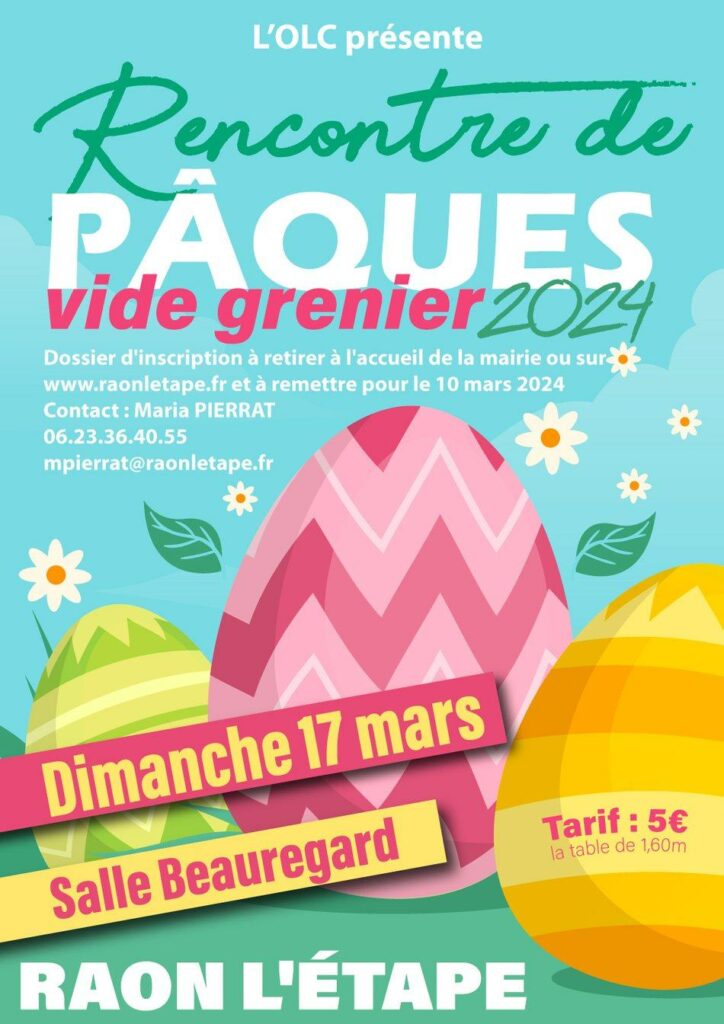 La Ville de Raon-l’Etape et l’Office des Loisirs et de la Culture organisent le troisième marché de Pâques, le dimanche 17 mars de 10h à 18h à la salle Beauregard.