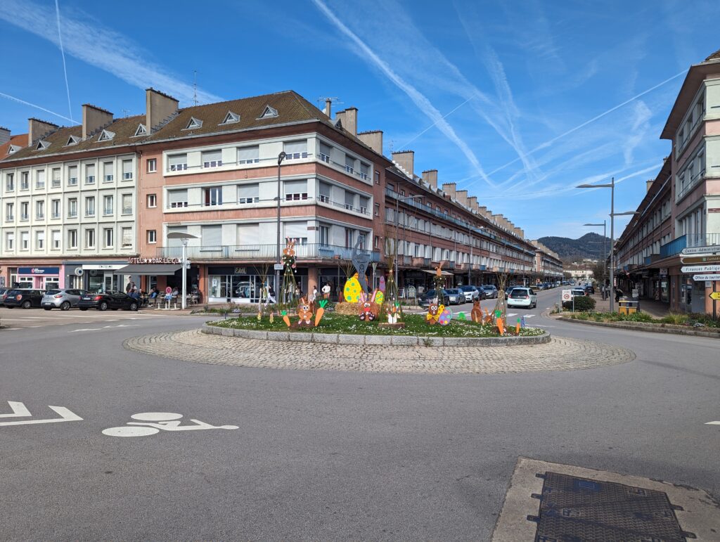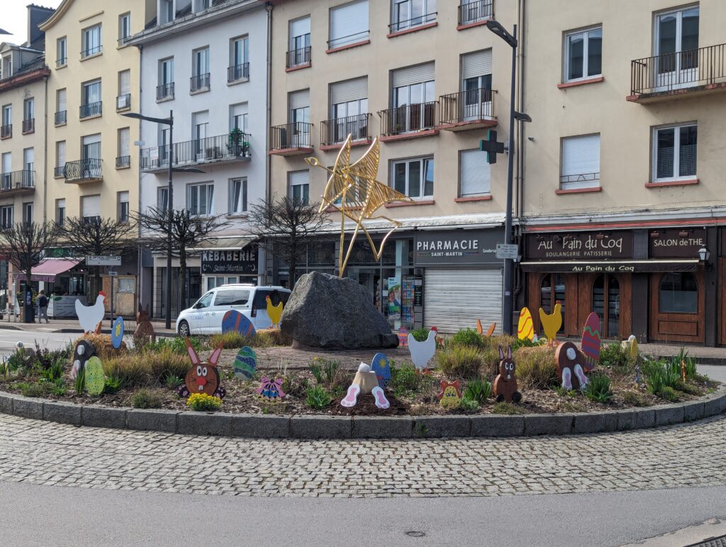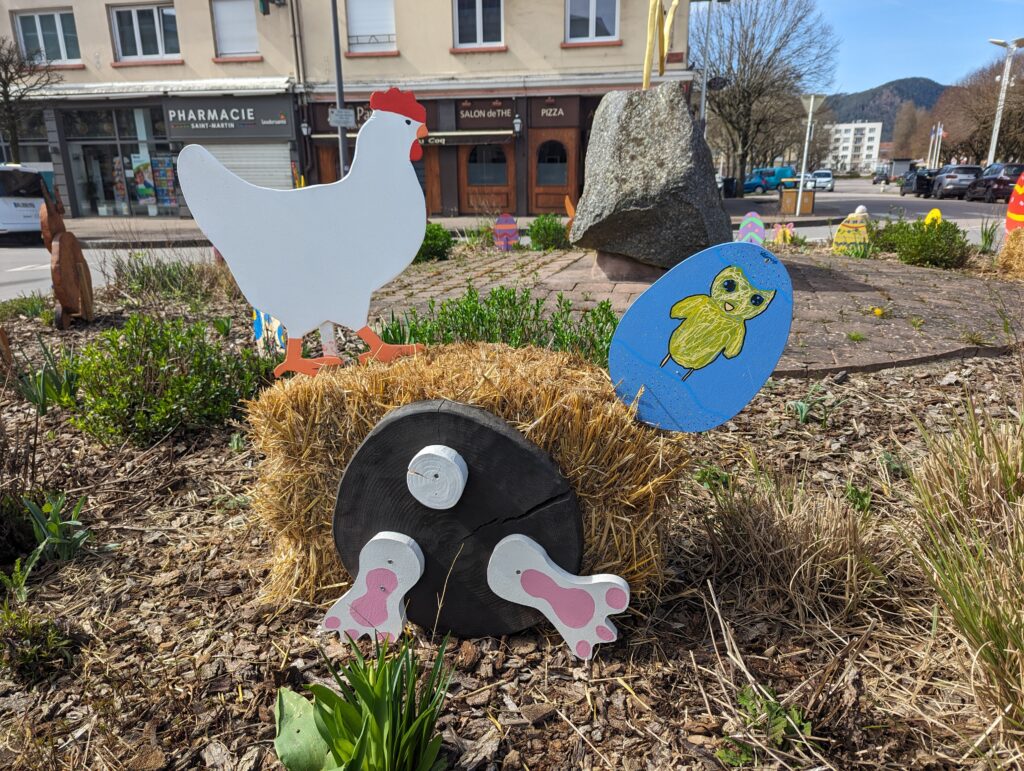 Un air de Pâques flotte au centre-ville de Saint-Dié-des-Vosges, avec l’installation cette semaine des décorations de Pâques sur les ronds-points du Délos, sur la rive gauche de la Meurthe, et du Modulor, sur la rive droite, par les agents des services techniques.