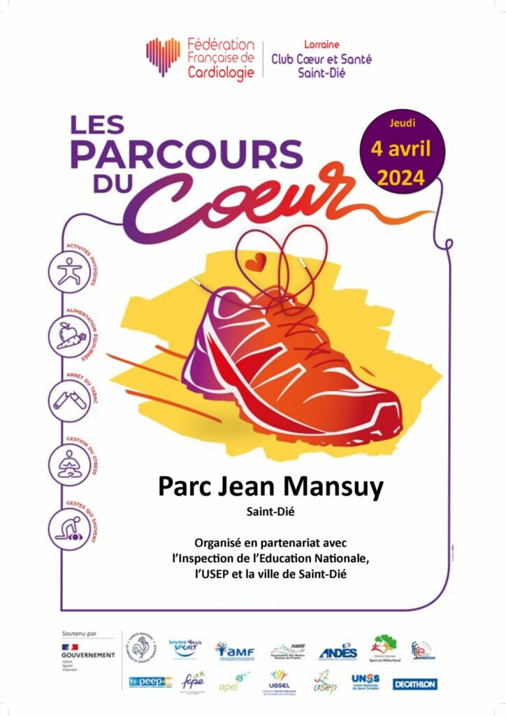 Le Parcours du Cœur scolaire (34ème édition) est prévu jeudi 4 avril 2024 dans le Parc Jean Mansuy et à l’Espace François Mitterrand à l’intention des élèves de CM1.