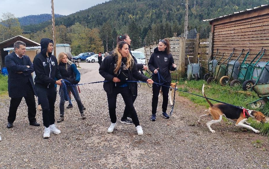 Profitant d’une quinzaine de jours de battement entre leur dernier match et les vacances, les Louves ont souhaité s’investir pour la Commune durant cette période. C’est donc auprès de la SPA Déodatienne que les volleyeuses ont fait preuve de solidarité, accueillies par la présidente Catherine Toussaint et les équipes du refuge. Et c’est sur les hauteurs des Moitresses que le rendez-vous avait été donné car les LOuves sont notamment venues en renfort des équipes de la SPA à l’occasion de la promenade des chiens. Un moment d’engagement solidaire particulièrement apprécié, y compris par le maire de la ville Bruno Toussaint qui rappelait que « Les Louves illustrent ce que je demandent aux associations depuis le début de mon mandat. La Ville fait beaucoup pour les clubs déodatiens, un retour de leur part est toujours apprécié ».