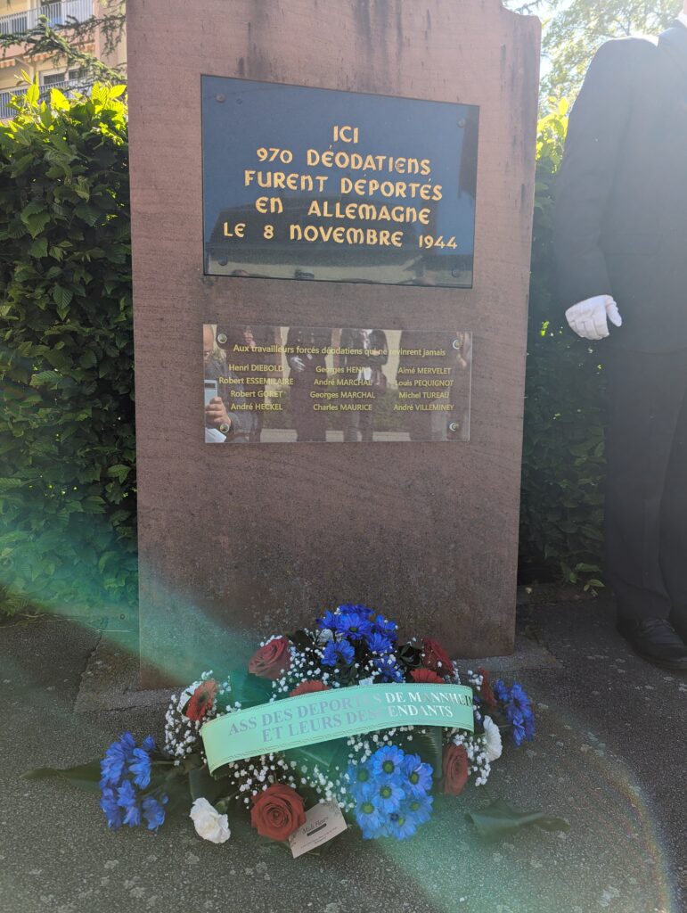 « Ici, 970 Déodatiens furent déportés en Allemagne le 8 novembre 1944 ». C’est devant la stèle portant cette inscription qu’une courte cérémonie s’est tenue ce samedi matin rue d’Alsace, à l’intersection avec la rue du Mondelet, pour commémorer le retour dans leur foyer des Déportés de Mannheim… et ainsi leur rendre un nouvel hommage, pour ne pas oublier ce tragique épisode de l’histoire de la Déodatie.