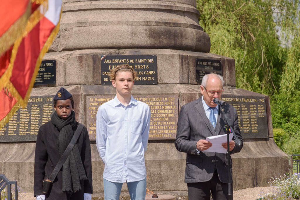A Saint-Dié-des-Vosges, la cérémonie de commémoration du 8 mai a débuté au niveau de la stèle Rhin Danube, où s’étaient rassemblés en milieu de matinée les élus, représentants des autorités et des associations patriotiques. Ce moment d’hommage et de recueillement s’est ensuite poursuivi au monument aux morts déodatien, avec le ravivage de la flamme, des lectures de messages et des dépôts de gerbes de fleurs. Par le Souvenir Français, par le Comité de Coordination des Associations Patriotiques et Militaires, et par les autorités.