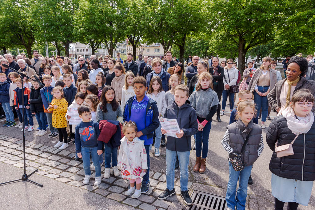 Entretenir le devoir de mémoire pour que des pages tragiques de l’Histoire telles que la Seconde Guerre mondiale ne sombrent pas dans l’oubli, tel est l’enjeu principal des cérémonies patriotiques. Un devoir de mémoire auquel le maire Bruno Toussaint souhaite associer les jeunes générations. C’est pourquoi les enfants des écoles de Saint-Dié-des-Vosges et les Jeunes Sapeurs-Pompiers ont entonné ce matin La Marseillaise.