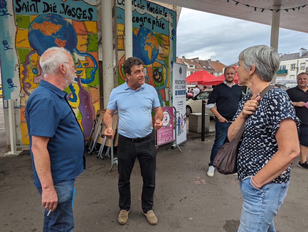 Le maire Bruno Toussaint lors d’une permanence sur le marché de Saint-Dié-des-Vosges (Archive)
