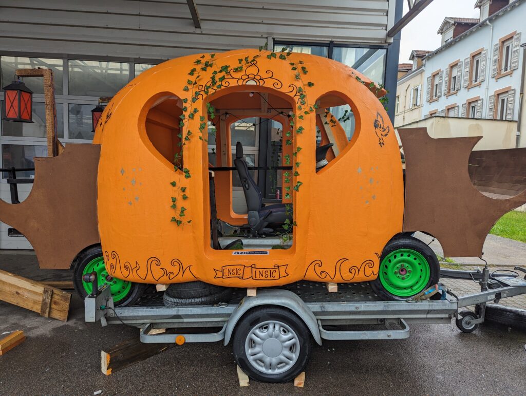 Et comme pour chaque édition l’InSIC vise cette année au moins le prix du plus beau char. Un prix que l’école d’ingénieur déodatienne a déjà remporté à 5 ou 6 reprises. S’il y a 2 ans il s’agissait d’un combi Volkswagen, le char prend cette fois-ci l’apparence d’une citrouille géante, toute de orange vêtue. La majorité du véhicule, qui dispose d’un volant, de freins et d’éclairages, a été réalisée depuis novembre dernier au moyen de l’une des machines à commande numérique de l’InSIC. Lors des « 24h de Stan », les étudiants déodatiens feront équipe avec ceux de l’Ecole Nationale Supérieure des Industries Chimiques – ENSIC – de Nancy.