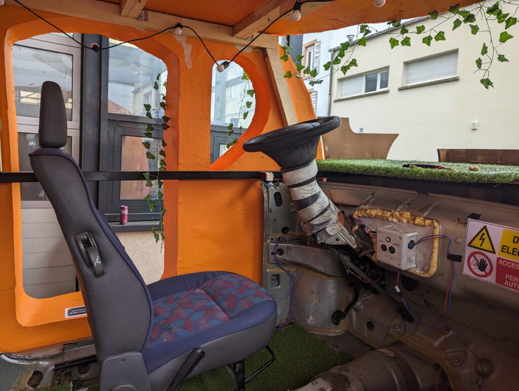Le devant du char réalisé il y a 2 ans par les élèves-ingénieurs de l’InSIC.