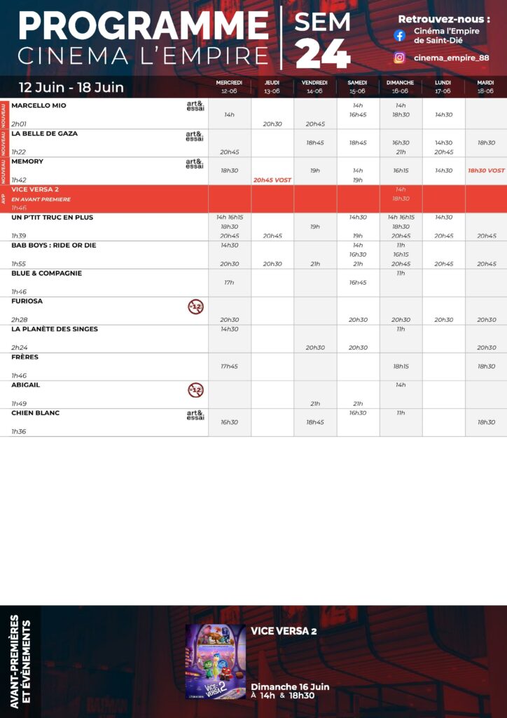 Deprecated: Use of "parent" in callables is deprecated in /project/VIDEV/web/app/plugins/simple-lightbox/includes/class.options.php on line 501 Au cinéma l’Empire du 12 au 18 juin - Saint Die Info