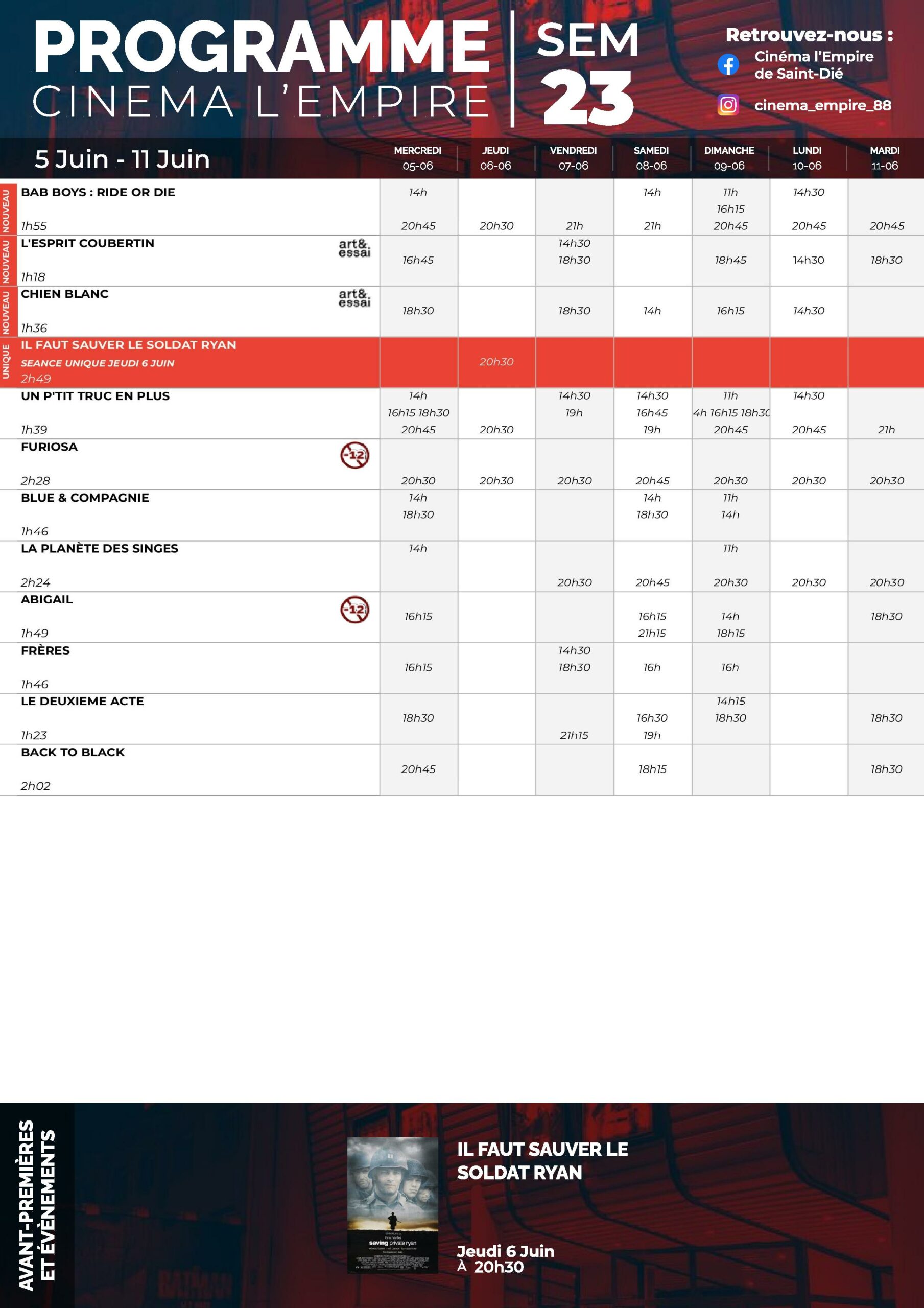 Deprecated: Use of "parent" in callables is deprecated in /project/VIDEV/web/app/plugins/simple-lightbox/includes/class.options.php on line 501 Au cinéma l’Empire du 5 au 11 juin - Saint Die Info