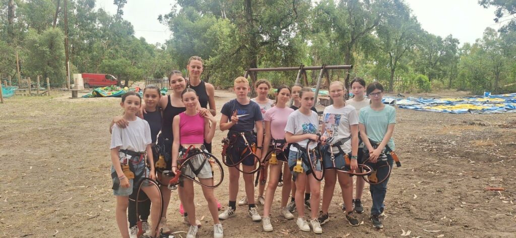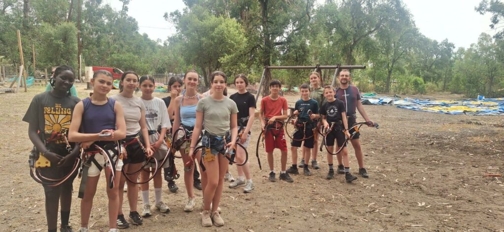 Le 4ème jour, ils sont partis à l’aventure dans le parc d’accrobranche de Solenzara au cœur d’une forêt d’eucalyptus !! Au programme de cette demi-journée sportive : tyroliennes, parcours dans les arbres, ponts suspendus, poutres… Les grimpeurs en herbe ont pu choisir parmi des parcours de difficultés variées, survolant la Solenzara et s’entraidant face aux défis. Sensations fortes et dépassement de soi étaient au rendez-vous.