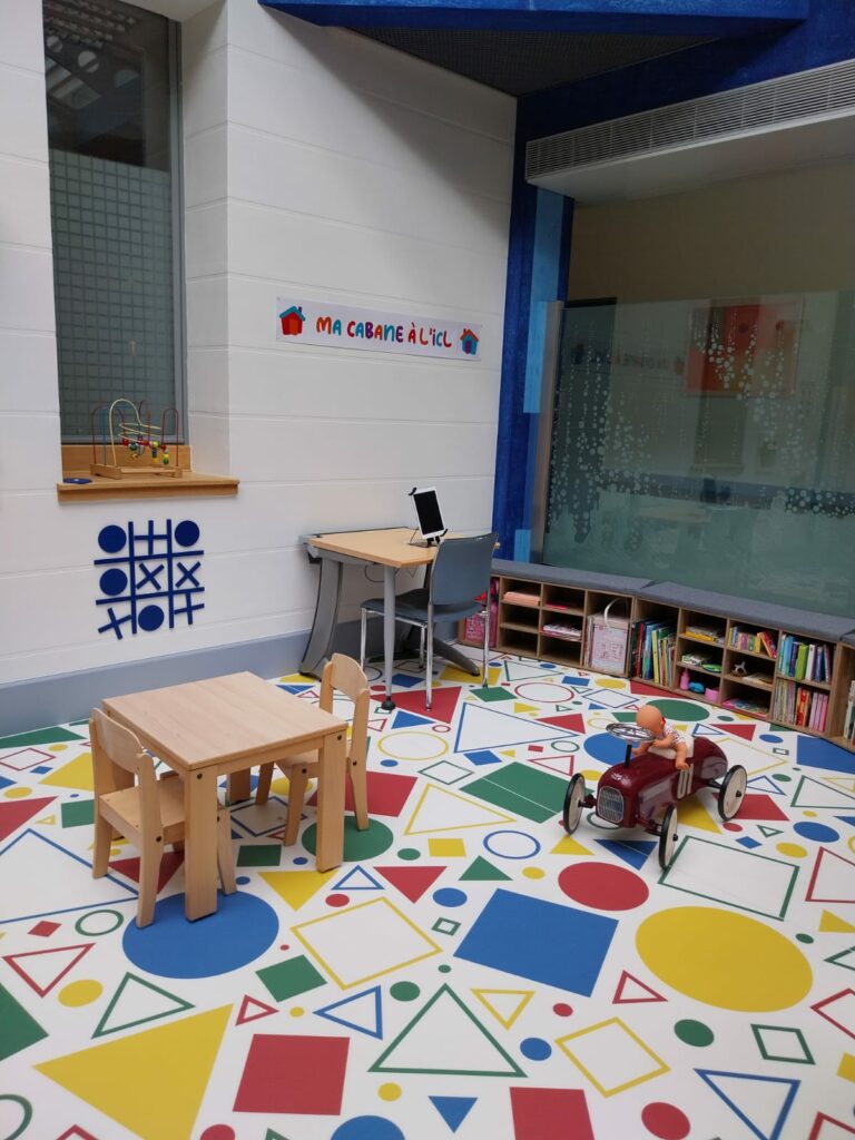 Ce projet de rénovation a été imaginé par les manipulatrices de radiothérapie et porté par l’ensemble du service, qui souhaitait réhabiliter cet espace à la fois indispensable aux familles et très apprécié des enfants. Baptisé « Ma cabane à l’ICL », cet espace a pu être réalisé grâce aux dons de plusieurs clubs services, dont 6 clubs Kiwanis de la région nancéienne. Le club Soroptimist de Saint-Dié-des-Vosges ayant, pour sa part, financé l’achat du mobilier et des jeux qui l’équipent.