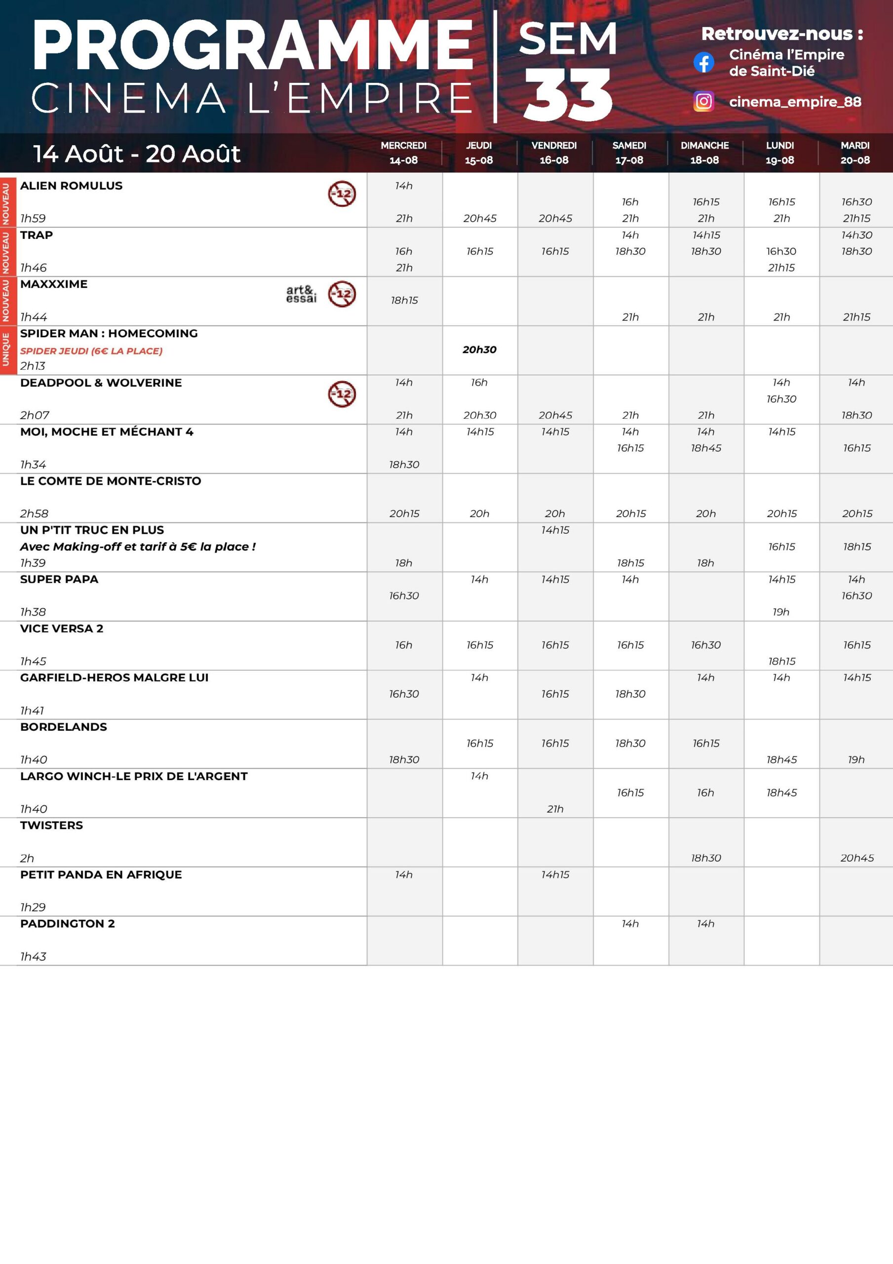 Deprecated: Use of "parent" in callables is deprecated in /project/VIDEV/web/app/plugins/simple-lightbox/includes/class.options.php on line 501 Au cinéma l’Empire du 14 au 20 août - Saint Die Info