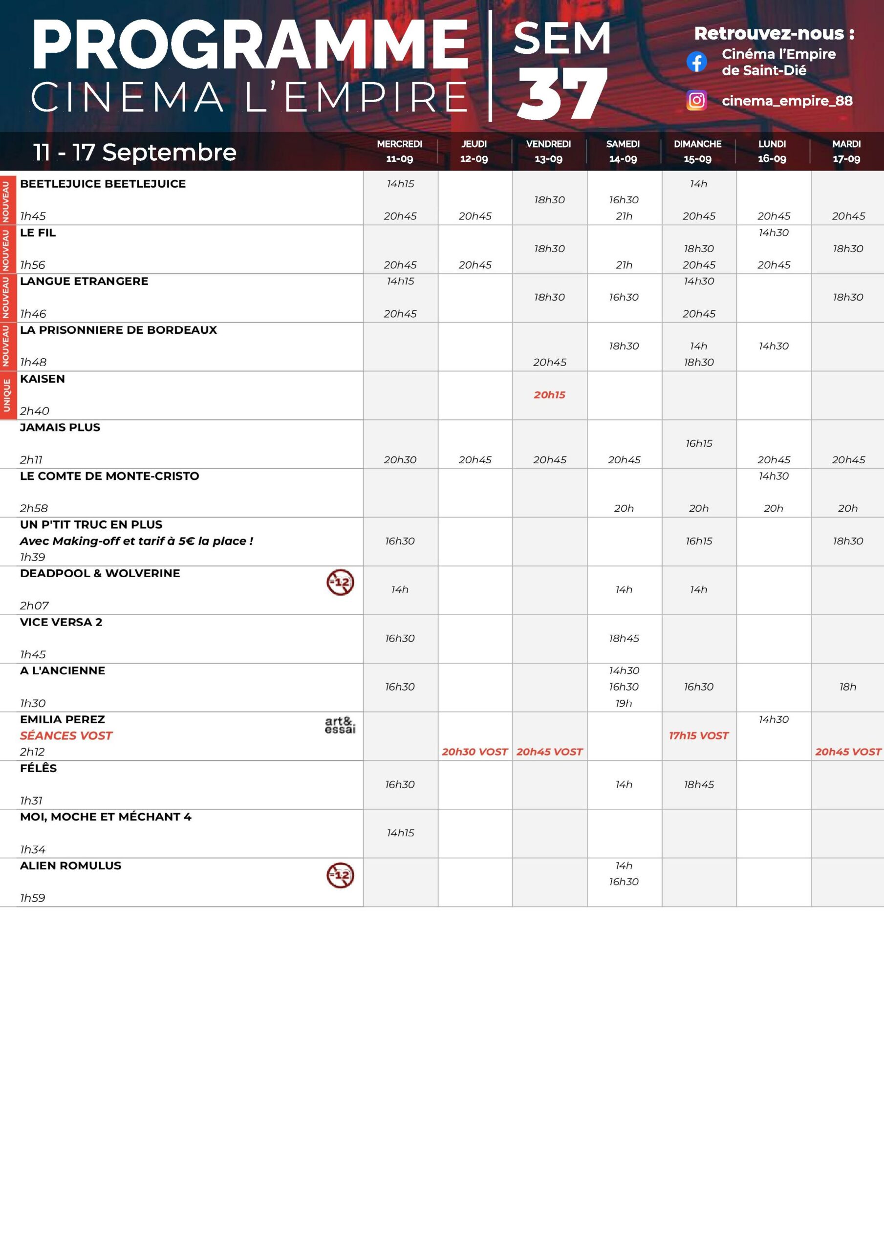 Deprecated: Use of "parent" in callables is deprecated in /project/VIDEV/web/app/plugins/simple-lightbox/includes/class.options.php on line 501 Au cinéma l'Empire du 11 au 17 septembre - Saint Die Info