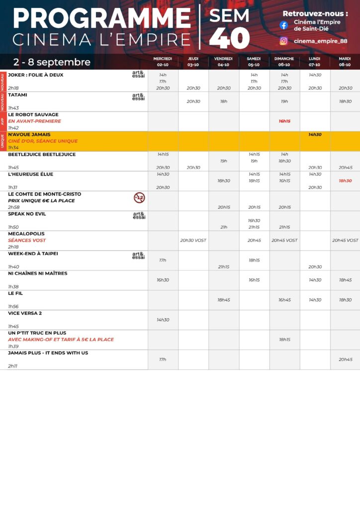 Deprecated: Use of "parent" in callables is deprecated in /project/VIDEV/web/app/plugins/simple-lightbox/includes/class.options.php on line 501 Au cinéma l'Empire du 2 au 8 octobre - Saint Die Info