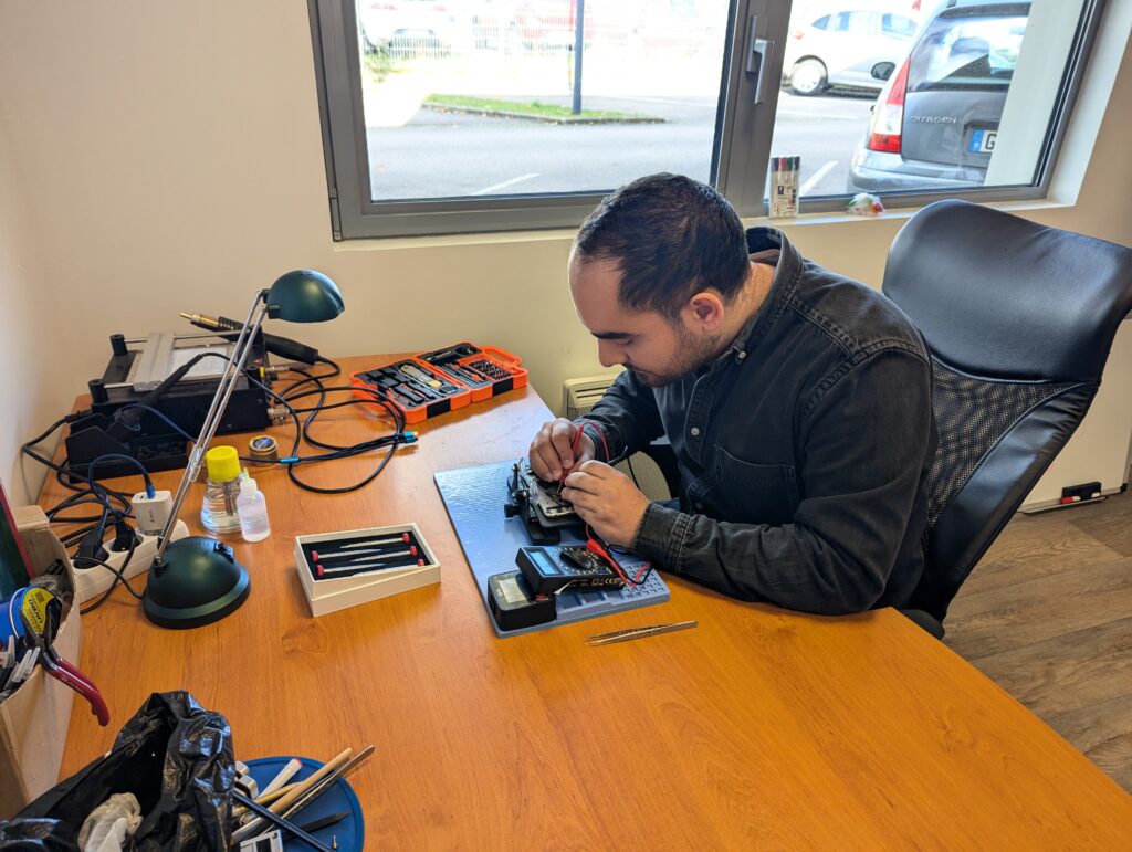 S’il a la fibre formatrice, la réparation d’appareils électronique est venue plus tard. Pendant la crise sanitaire du Covid-19. « A force de casser mes téléphones, j’ai appris à les réparer. Puis je me suis lancé en proposant mes services de réparation. Dès le départ, mon objectif était d’apprendre le métier pour ensuite devenir formateur. Pendant cette période du Covid-19, je suis parti travailler à Paris, où j’ai géré 2 boutiques de réparation de téléphones dans le 13e Arrondissement. Après quelques années, j’ai souhaité revenir sur le secteur de Saint-Dié-des-Vosges. J’ai créé mon entreprise en mai 2023. Je travaillais depuis mon domicile, mais j’ai préféré rejoindre la Pépinière d’Entreprises pour l’émulation qu’il y a ici ».