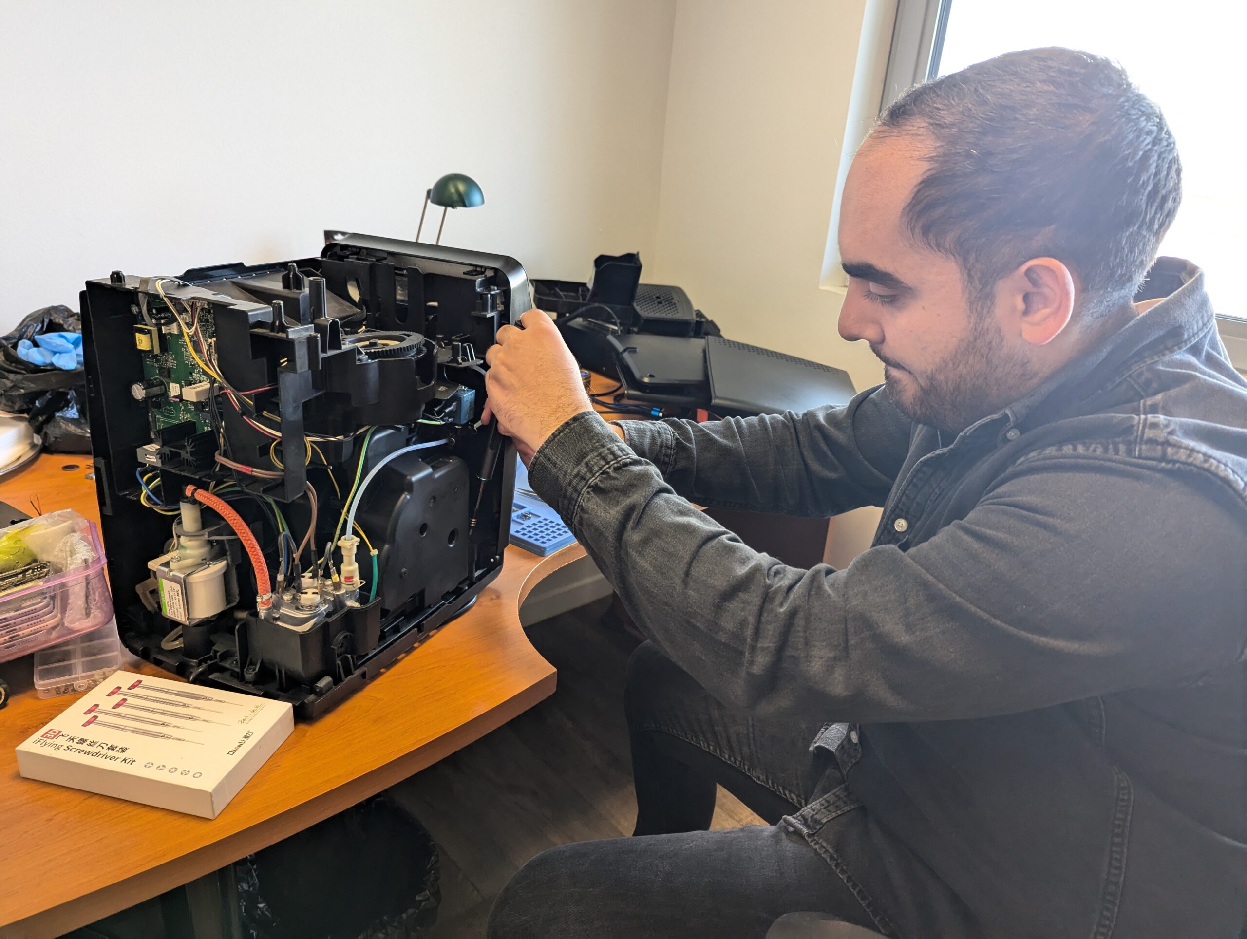 En autodidacte, Kerem Özdemir apprend à réparer tout types de téléphones… puis tout types d’appareils électroniques. Ordinateurs, machines à café, trottinettes électriques, clés de voiture… « Dans la réparation d’appareils électroniques, c’est plus ou moins toujours le même principe. Donc quand on a compris comment le système fonctionne, on peut presque tout réparer. J’apprends tous les jours de nouvelles choses en matière d’électronique, car j’aime bien me lancer des challenges. Et plus je répares, plus je me rends compte du gâchis écologique, qui est catastrophique. Car beaucoup d’appareils peuvent être réparés en changeant simplement une petite pièce. ».