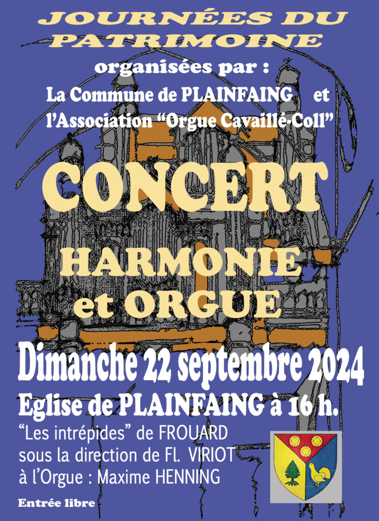 A l’occasion des Journées du Patrimoine, la Municipalité de Plainfaing et l’Association « Orgue Cavaillé-Coll de Plainfaing » proposent un concert festif, ce dimanche 22 septembre à 16 heures en l’église Saint -Nicolas de Plainfaing.