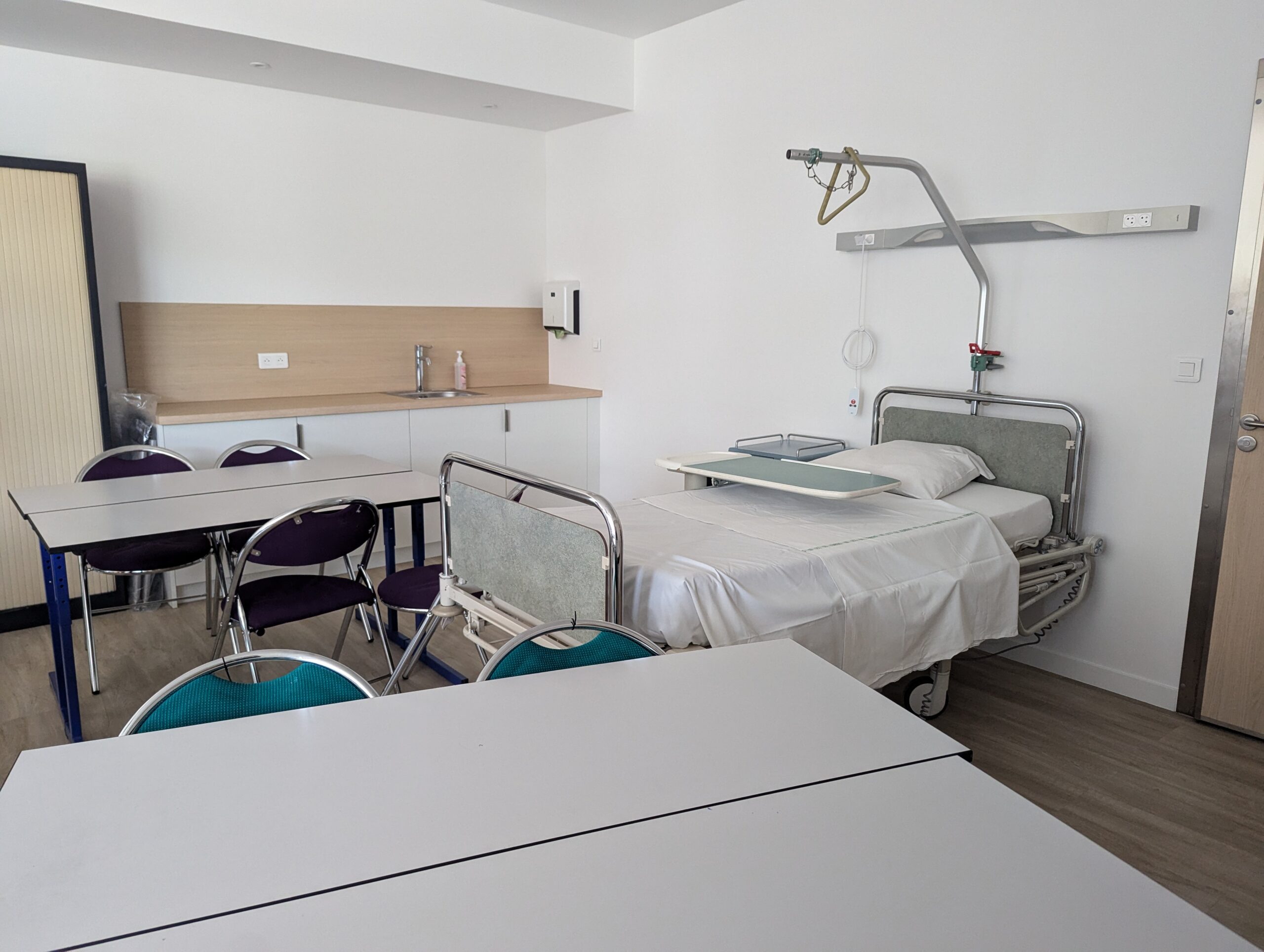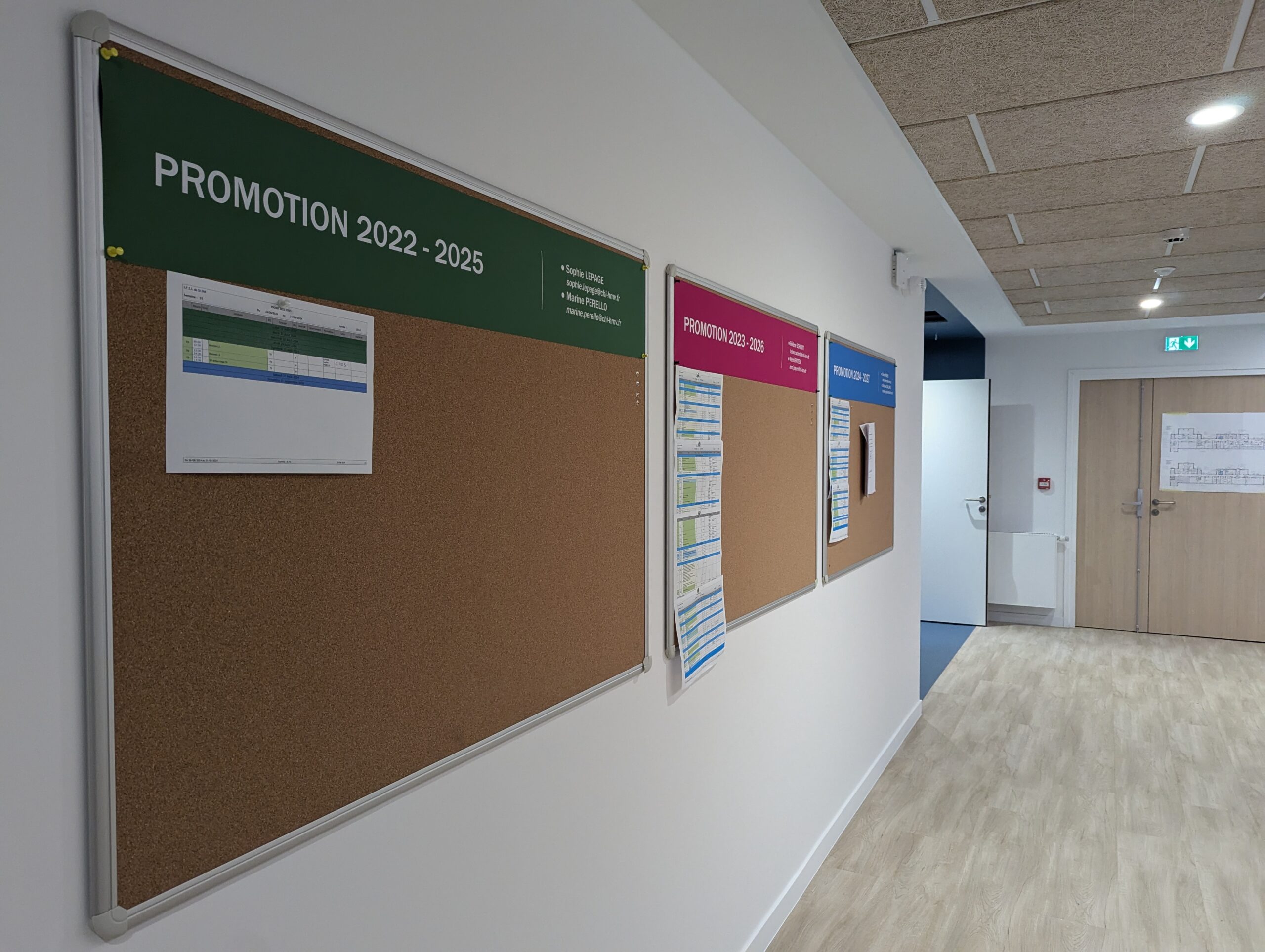 Le pôle, qui totalise une surface de 2350m² répartie en 2 étages, se compose de 4 salles de Travaux Pratiques, avec des lits, espaces tables et de petites salles de bain ; 4 salles de soins pour une mise en pratique, avec notamment des armoires à pharmacie ; 3 salles de cours ; 2 salles de groupe, dont une grande salle modulable de 48 à 120 places – soit davantage que l’ancien amphithéâtre de l’IFSI – une salle de simulation, pour que élèves et étudiants puissent être évalués en situation pratique ; une cafétéria, un CDI et une salle informatique ; des bureaux et salles de réunion pour les équipes pédagogiques et administratives.