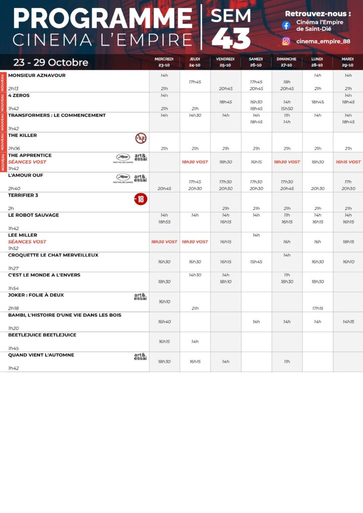 Deprecated: Use of "parent" in callables is deprecated in /project/VIDEV/web/app/plugins/simple-lightbox/includes/class.options.php on line 501 Au cinéma l'Empire du 23 au 29 octobre - Saint Die Info