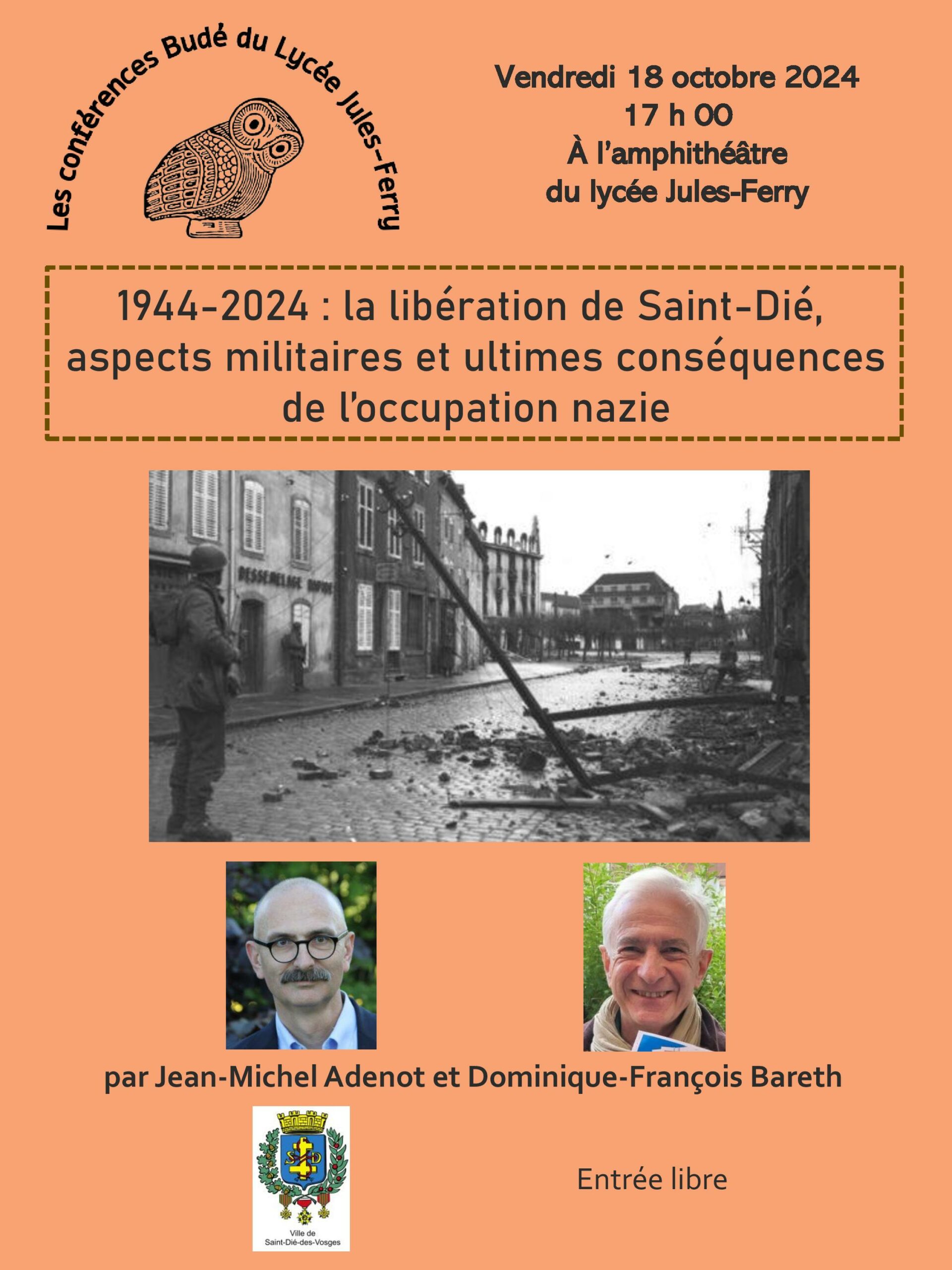 Conférence Budé : « La Libération de Saint-Dié, aspects militaires et ultimes conséquences de l’occupation nazie » par Jean-Michel Adenot et Dominique-Franois Bareth
