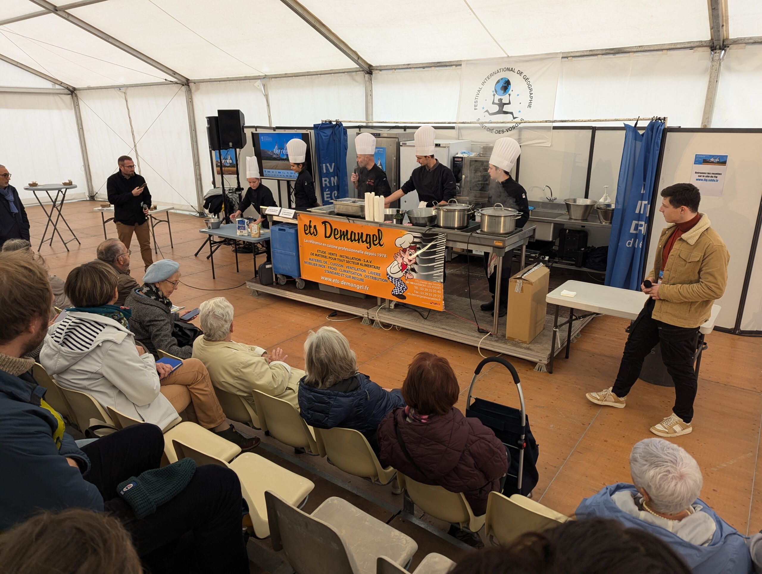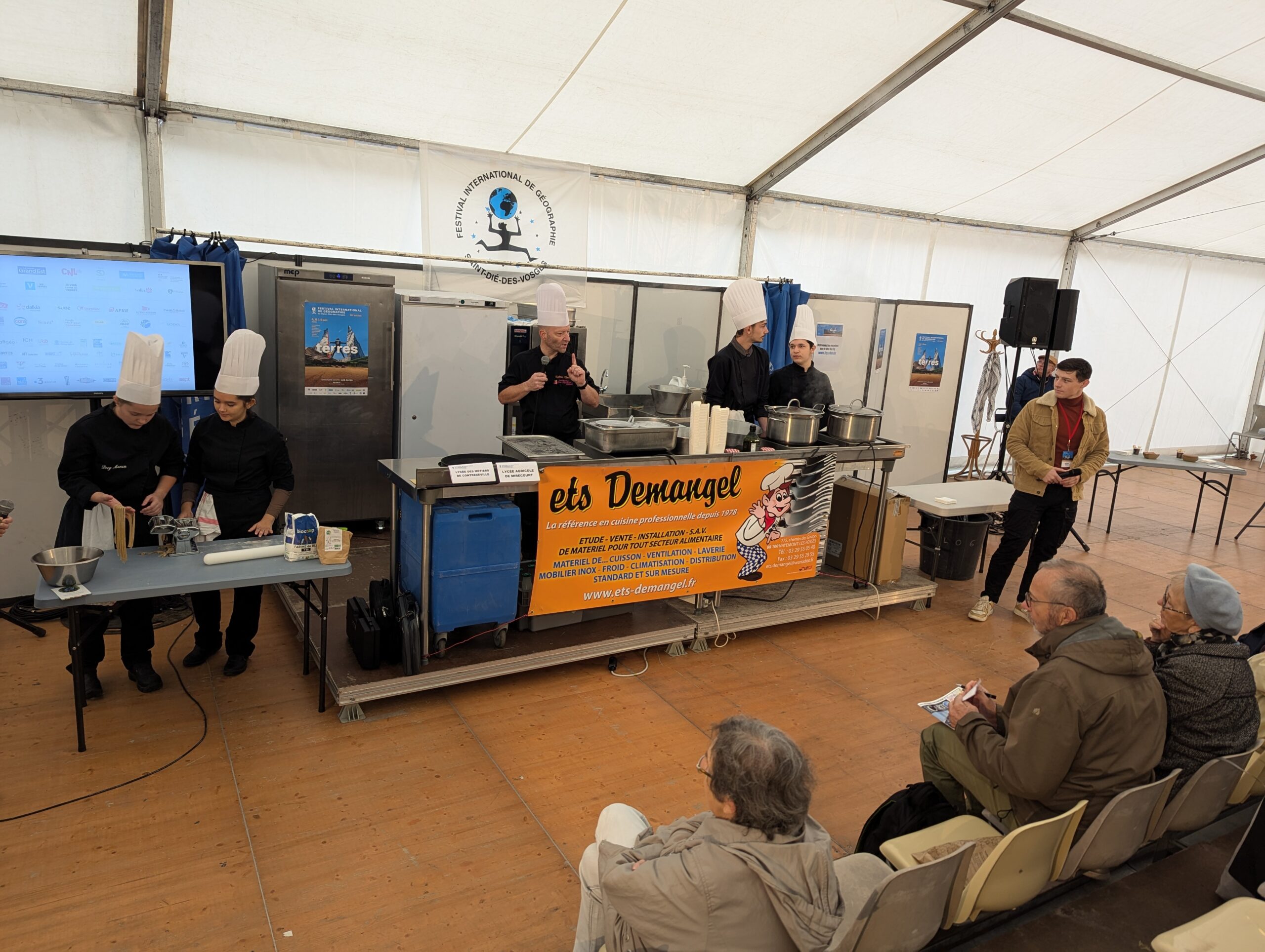 Les démonstrations culinaires font leur retour pour ce 35e Festival International de Géographie de Saint-Dié-des-Vosges. Ce vendredi en toute fin de matinée, les lycées des métiers de Contrexéville et agricole de Mirecourt ont concocté des pâtes tagliatelles, à la farine de lentilles et aux figues.
