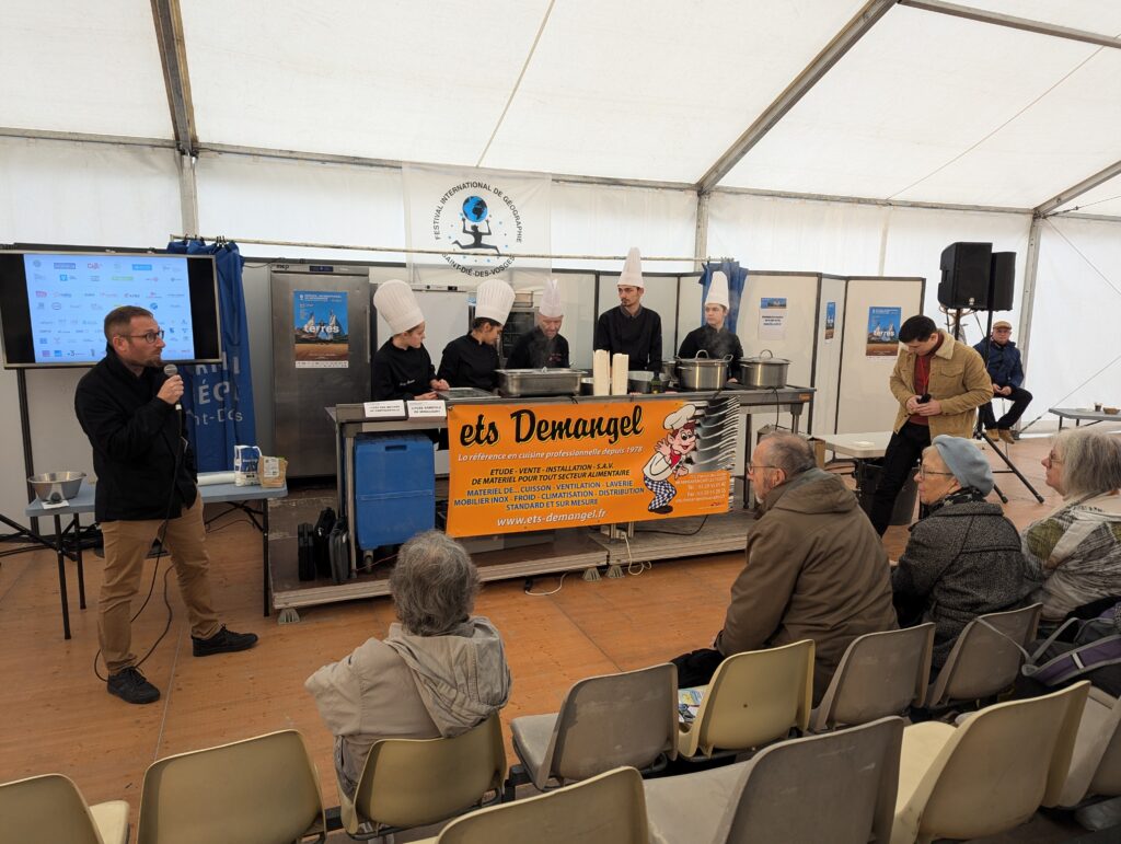 Comme l’a précisé Pierre Guillemin, de l’Institut National de Recherche pour l’Agriculture, l’Alimentation et l’Environnement – INRAE – « la démonstration de ce matin s’inscrit dans le cadre du projet « Menu 2050 », sur lequel travaillent les 2 lycées depuis fin 2022. L’objectif de ce projet est de réfléchir à une prospective alimentaire, sur comment cuisiner dans les Vosges en 2050 avec le changement climatique. »