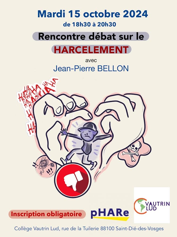 Le collège Vautrin LUD organise une rencontre-débat sur le harcèlement scolaire, avec l’intervention de Jean-Pierre BELLON, membre du comité d’experts sur le harcèlement au ministère de l’Éducation Nationale.