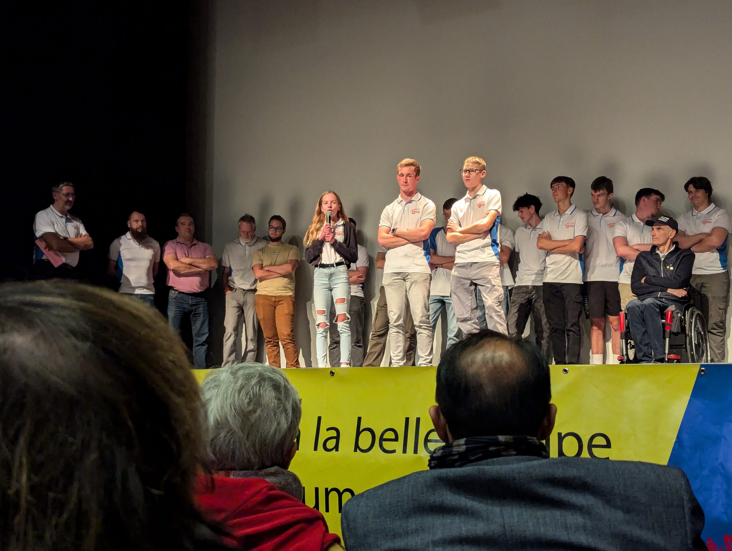 C’est pour remercier ces partenaires qu’était organisée la soirée de ce mercredi à l’Espace Georges-Sadoul. L’occasion pour toute l’équipe de se retrouver, et de diffuser pour la première fois le film de 45 minutes retraçant les différentes étapes de cette belle aventure humaine et sportive, de sa genèse à sa fin. Un film entièrement réalisé par 2 élèves, nommément Robin Desaga, qui a participé au défi, et Eliot Fessler.