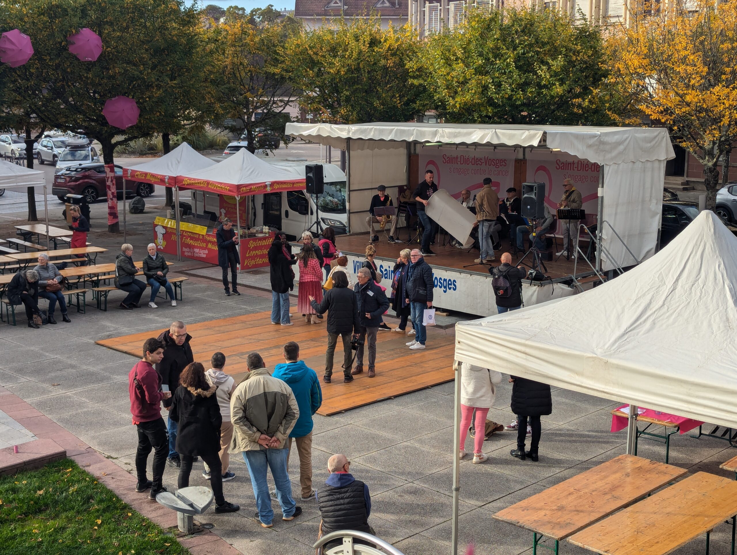 C’est ce vendredi en fin de journée, sur une place du Général-de-Gaulle dont les arbres sont parés de parapluies et de tricots roses, que le maire Bruno Toussaint et Annie Dumoulin, référente de l’antenne déodatienne de la Ligue contre le Cancer, ont donné le coup d’envoi de cet Octobre Rose 2024, en coupant le ruban inaugural… rose de circonstance. Puis se sont enchaînés les mesures musicales et dansantes, avec le jazz club déodatien, Topic, AEVA et Mel’Fitness&Danse. Buvette, petite restauration, ventes d’objets, tee-shirts et gâteaux, ainsi que des massages ont complété le tableau de cette soirée caritative.