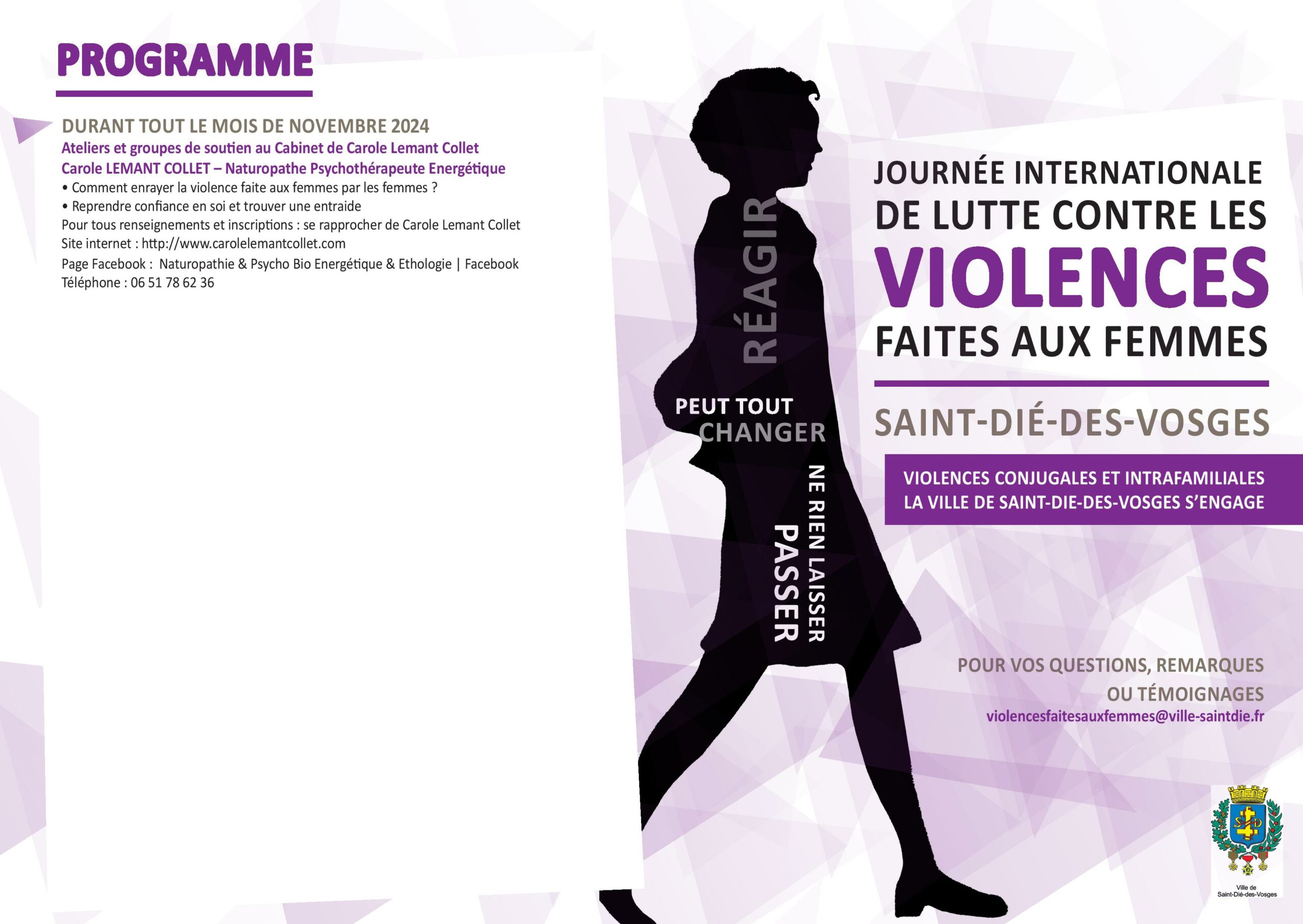 Dans le cadre de la Journée internationale de lutte contre les violences faites aux femmes, la Ville de Saint-Dié-des-Vosges, via le CCAS et ses partenaires, poursuit sa mobilisation en organisant des actions de sensibilisation tout au long du mois de novembre.