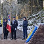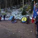 Une plaque récemment installée au-dessus de l’ancienne maison forestière Saint-Martin, dans le massif du Kemberg, au niveau du sentier d’où sont arrivés les militaires américains le 17 novembre 1944. En se penchant dessus, on peut y lire des extraits de cet événement, à travers le récit de Lucien Biehler, rédigé le 15 décembre 1944 et issu du fonds de la Société Philomatique Vosgienne.