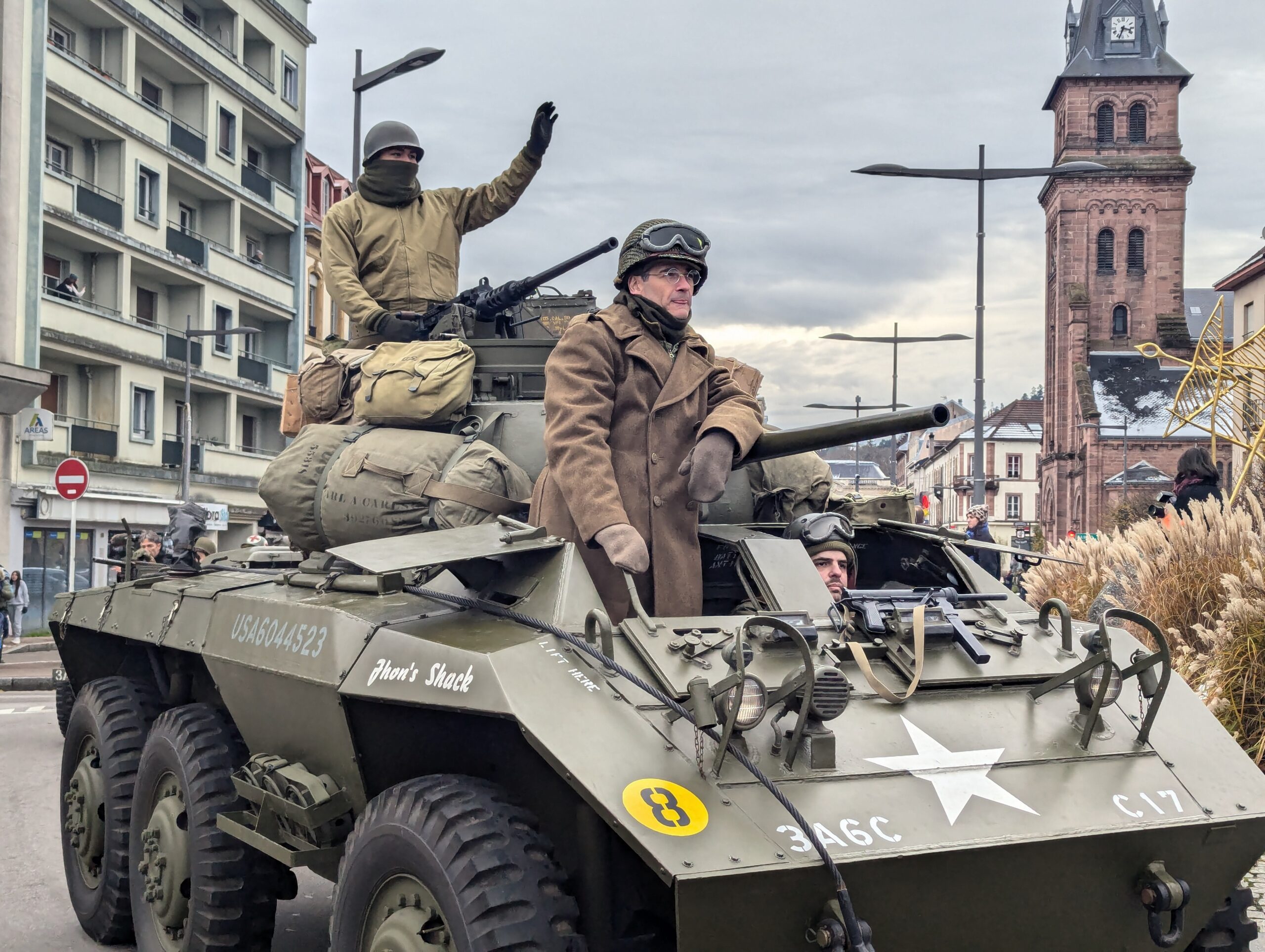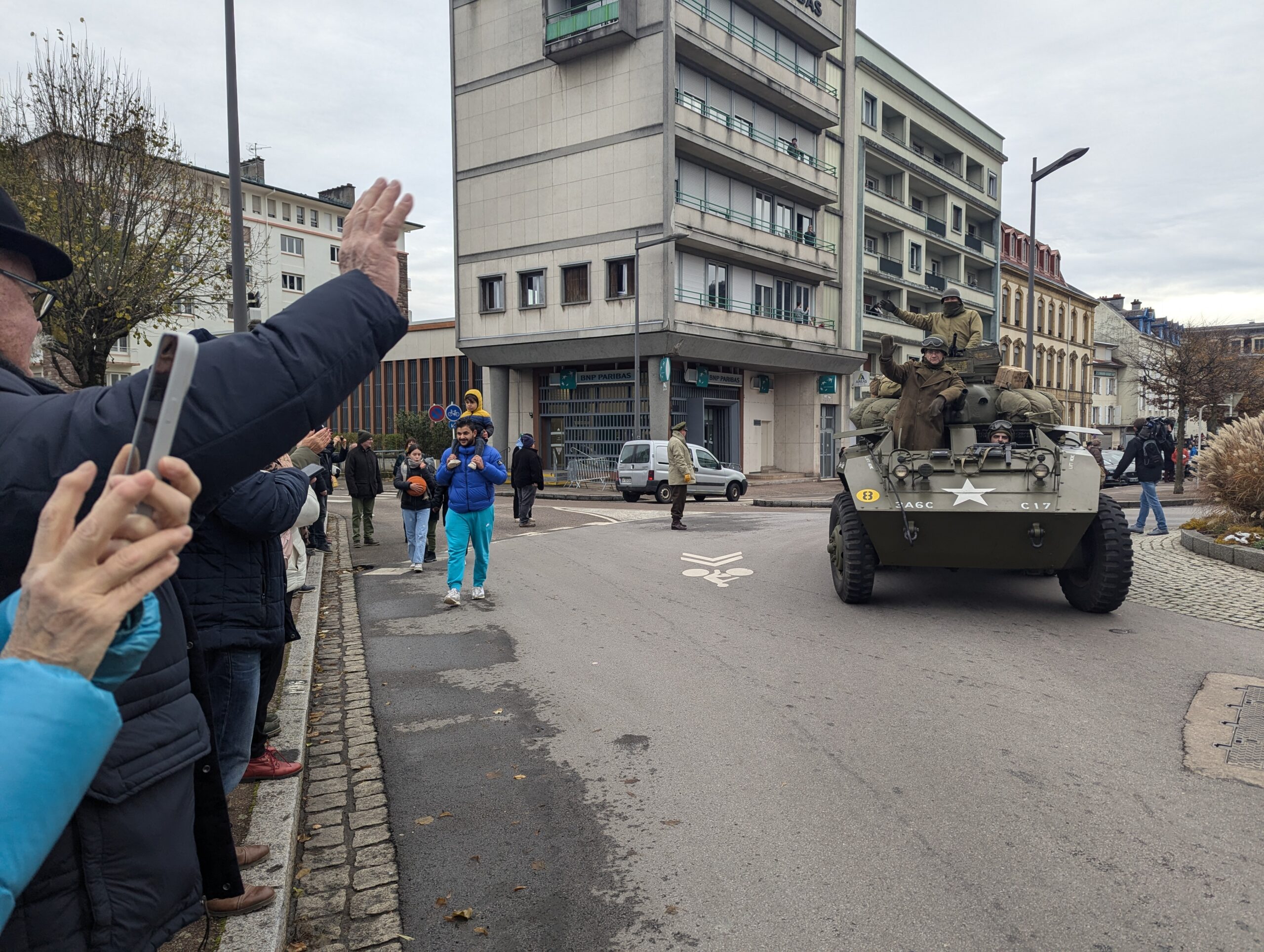 Au départ de Foucharupt, après la cérémonie commémorative à la stèle de la 103e Division d’Infanterie Américaine, les jeeps, camions de transport de troupes, le char de combat M3, le blindé à roues M8, le camion ambulance et autre Citroën des Forces Françaises Libres ont pris la direction de la place Saint-Martin, pour ensuite traverser la rue Thiers et rejoindre la place du Général-de-Gaulle. Le tout sous les yeux de plusieurs milliers de personnes. Retour en images sur ce défilé mémorable :