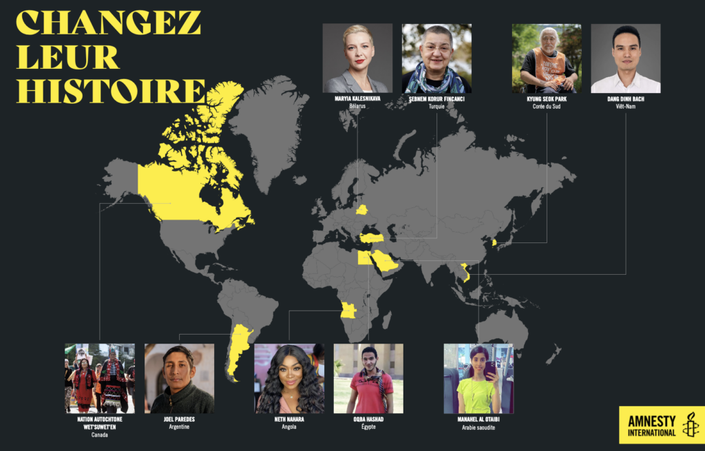 Anciennement nommée « 10 jours pour signer », l’opération « Changez leur histoire » a lieu autour du 10 décembre, une date synonyme de Journée internationale des Droits Humains. En cette année 2024, Amnesty International se mobilise pour défendre 9 personnes, ou groupes de personnes, en danger. A Saint-Dié-Des-Vosges, c’est dans le cadre de cette opération que des bénévoles du Groupe 179 d’Amnesty seront présents sur le marché, le vendredi 6 décembre prochain de 8h30 à 13h, afin de récolter le maximum de signatures du public.