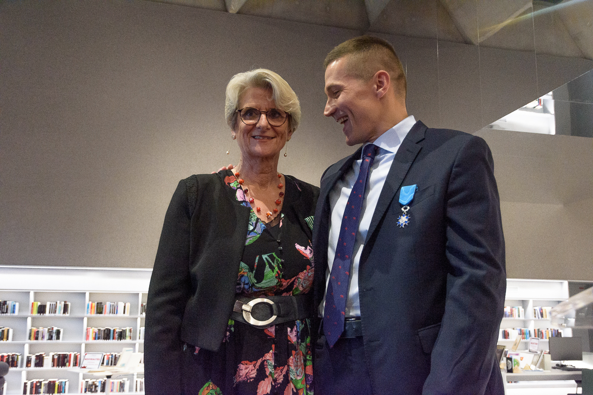 Pour son engagement durant de nombreuses années en faveur de la Culture, engagement qui se poursuit aujourd’hui, Claude Kiener a été décorée ce samedi 16 novembre des insignes de chevalière dans l’ordre des Arts et des Lettres. Une distinction remise en fin de journée à La Boussole, des mains de David Valence, ancien maire de Saint-Dié-des-Vosges, ancien président de la Communauté d’Agglomération et chevalier de l’ordre national du Mérite, lors d’une cérémonie en présence d’élus, d’artistes et d’acteurs de la Culture du territoire.