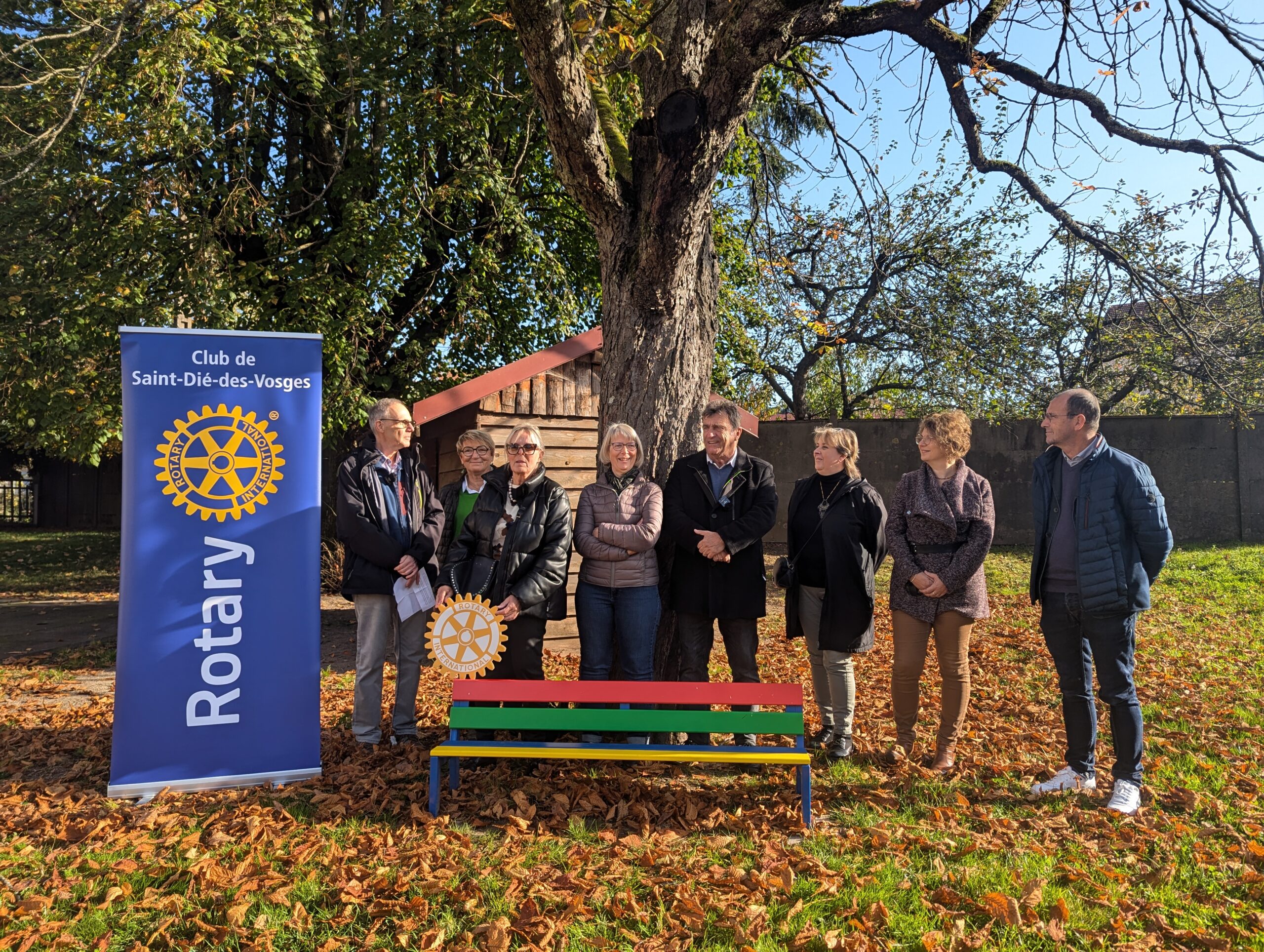 Ce projet, qui s’inscrit dans le cadre du 3e budget participatif de Saint-Dié-des-Vosges, est l’idée du Rotary Club. Une idée qui remonte à 2022 et auquel tous les membres du club service déodatien ont adhéré lorsqu’elle a été évoquée. L’achat et l’installation de ces bancs multicolores se chiffrent à 10 500€, dont 1000€ ont été financés par le Rotary et le reste par la Ville.