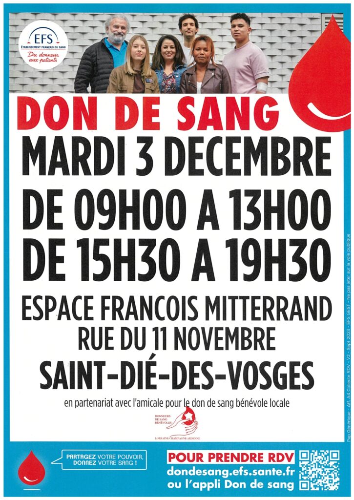 Don de sang : collecte à Saint-Dié-des-Vosges mardi 3 décembre