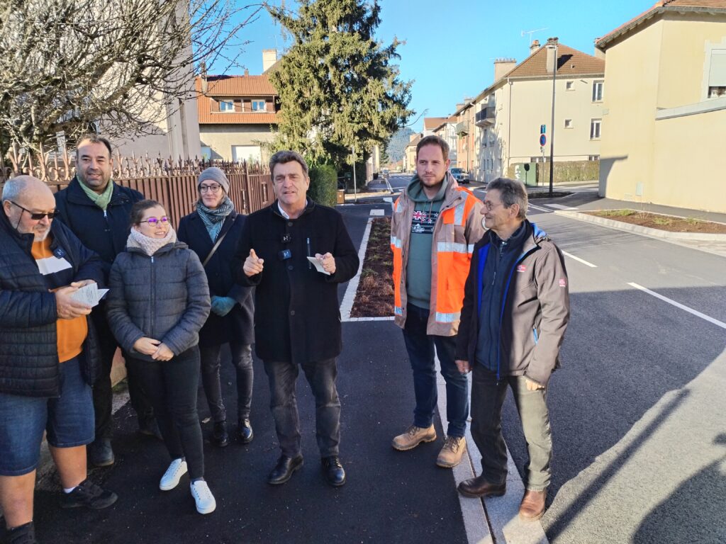 Désamiantage de la chaussée, réfection des réseaux humides, eaux pluviales, usées et potable, enfouissement des réseaux secs – électricité, téléphonie et fibre – remplacement du réseau de gaz, aménagements divers – voirie et trottoirs conformes à la réglementation Personnes à Mobilité Réduite, désimperméabilisation d’une partie de la voirie, création d’espaces verts avec 420 m2 de végétation plantée, 480 m2 de places de stationnement en pavés drainants, bordures en granit des Vosges, remplacement de l’éclairage public, de la signalisation, installation de mobilier urbain (bancs, arceaux à vélo, corbeilles de tri, corbeilles canines)… cet axe très emprunté a été entièrement refait.