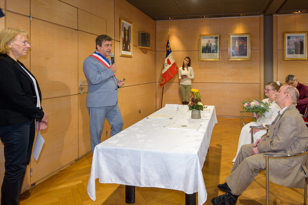Ce mercredi matin à 10h30, le maire Bruno Toussaint, assisté de la conseillère municipale Roselyne Froment, a célébré au Grand Salon de l’Hôtel de Ville le mariage de Lucio Monteiro Dos Santos et Evelyne Schwartz, tous 2 résidents du foyer déodatien Le Patio de l’ADAPEI88. Pour rappel, l’ADAPE88 oeuvre au service des personnes en situation de handicap intellectuel et de leurs familles. Nous leur souhaitons tous nos vœux de bonheur.