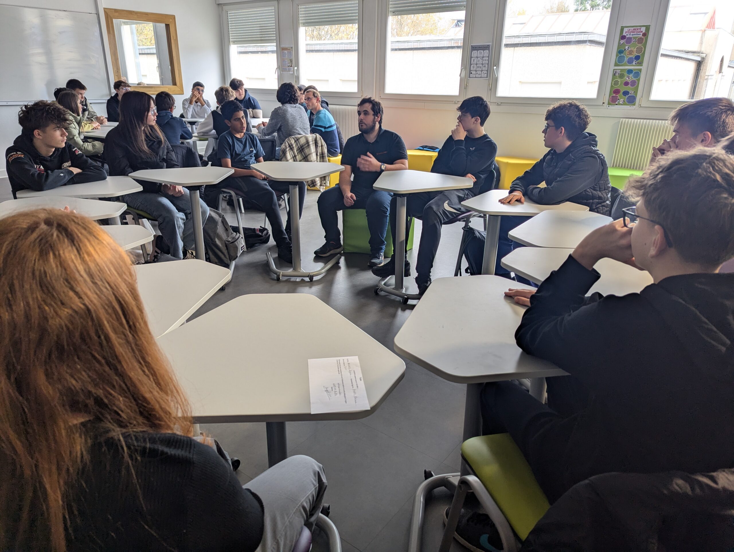 Si le lycée polyvalent déodatien participe chaque année à la Semaine de l’Industrie, c’est la première fois qu’un speed-meeting était organisé. Les élèves, répartis par petits groupes dee 10, ont échangé durant 10 minutes avec chaque intervenant. Après chaque intervention, ils ont écrit sur un post-it ce qu’ils ont retenu l’échange.