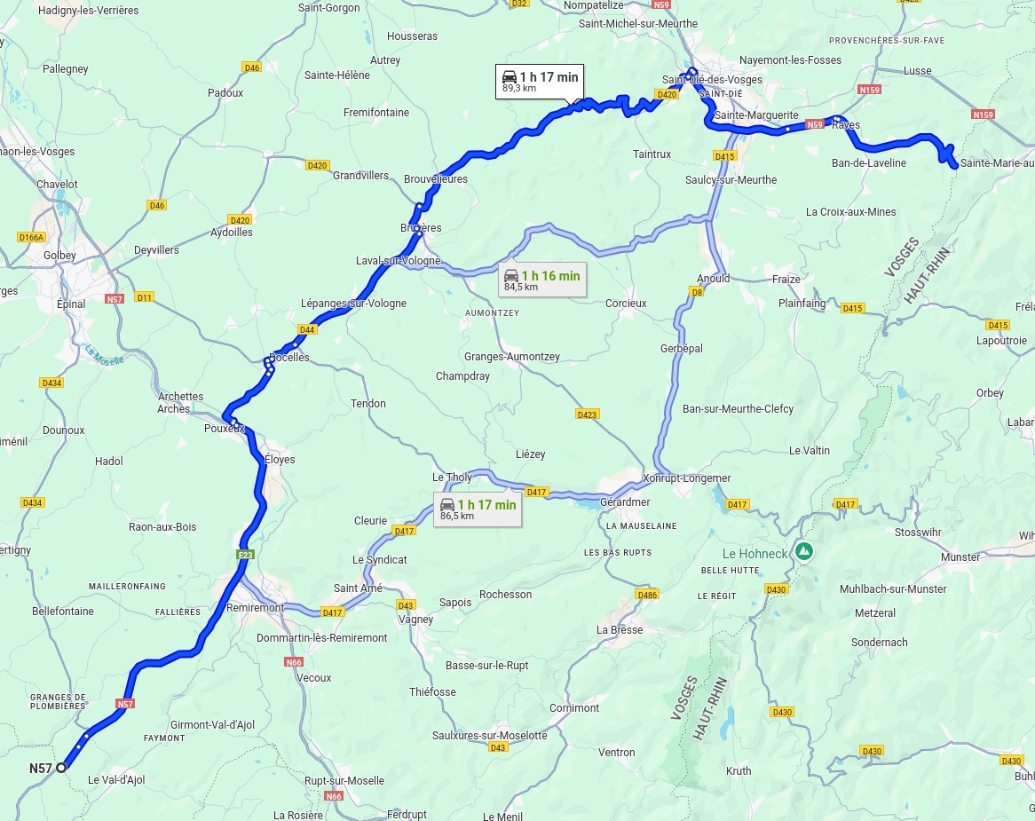 N57 : Entrée dans le département jusqu’à la sortie POUXEUX (direction JARMÉNIL / BRUYÈRES / RAMBERVILLERS)