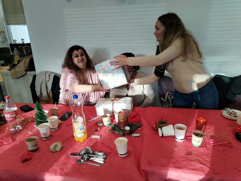 Pour rappel, la boîte solidaire est un concept qui consiste à remplir une boîte avec des objets essentiels et des petits plaisirs, pour une personne en situation de précarité. Les boîtes sont ensuite distribuées lors de collectes, organisées par des associations caritatives. Cet après-midi, ce sont quelques 140 boîtes solidaires qui ont été remises à Selia. Des boîtes au bénéfice des convives du repas de fin d’année, offert ce midi aux usagers du point accueil écoute, mais aussi aux jeunes pris en charge par l’association.