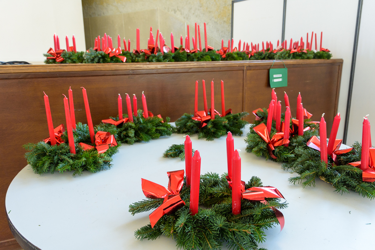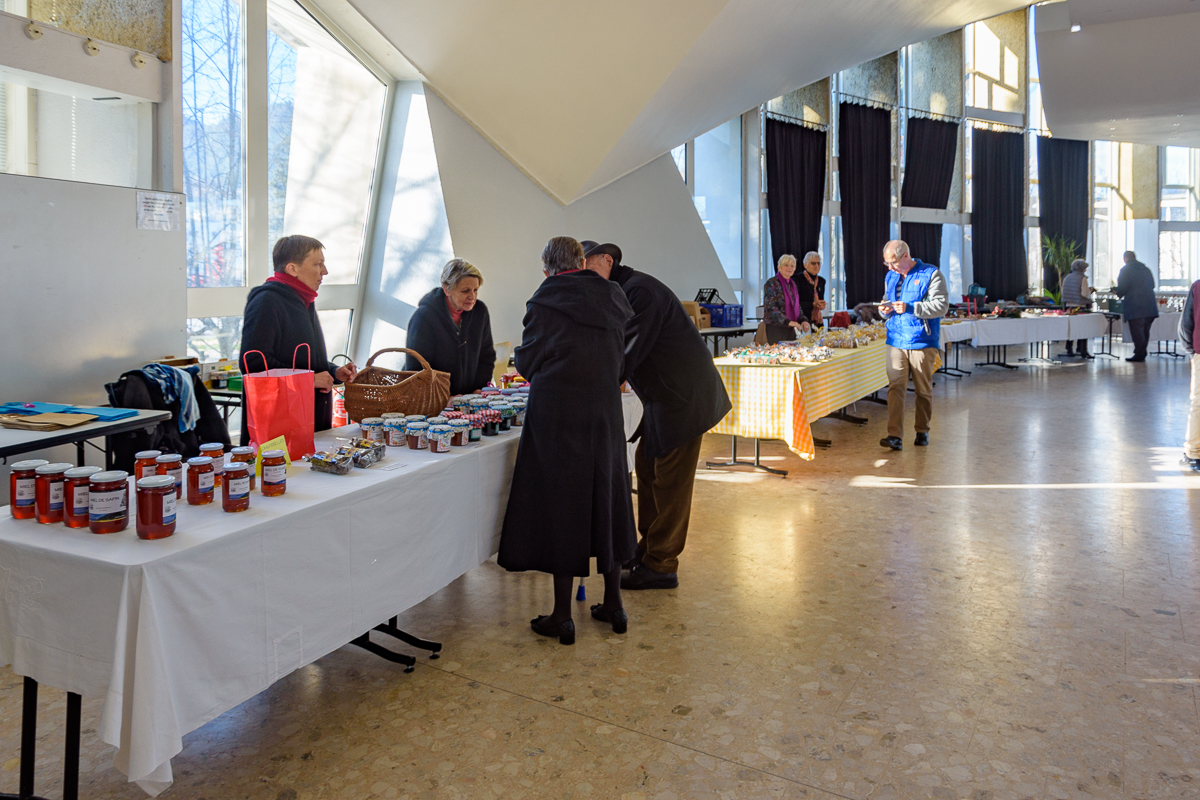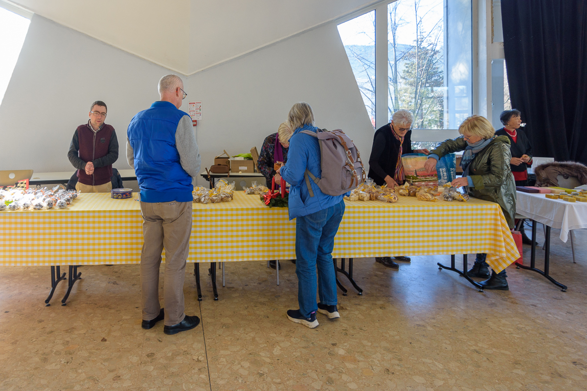 Sur place, différents stands étaient proposés aux visiteurs. Des stands sur lesquels on pouvait retrouver toutes sortes de décorations de Noël, des centres de tables, des petits sujets, des pâtisseries, des bredeles, des caramels et autres savons naturels… sans bien entendu oublier les fameuses couronnes de l’Avent, qui ont été confectionnées ces derniers jours par les bénévoles de la Paroisse. Du temps de midi, un grand repas a été partagé par une centaine de convives, avec un menu de l’Avent saupoudré d’un grand zeste de convivialité.