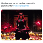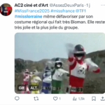 Comme l’an passé – où la Miss Lorraine arborait un costume en forme de table – le costume régional a suscité de vives réactions humoristiques sur les réseaux sociaux et notamment sur X (Twitter). Nous avons fait une sélection pour vous des réactions les plus drôles :